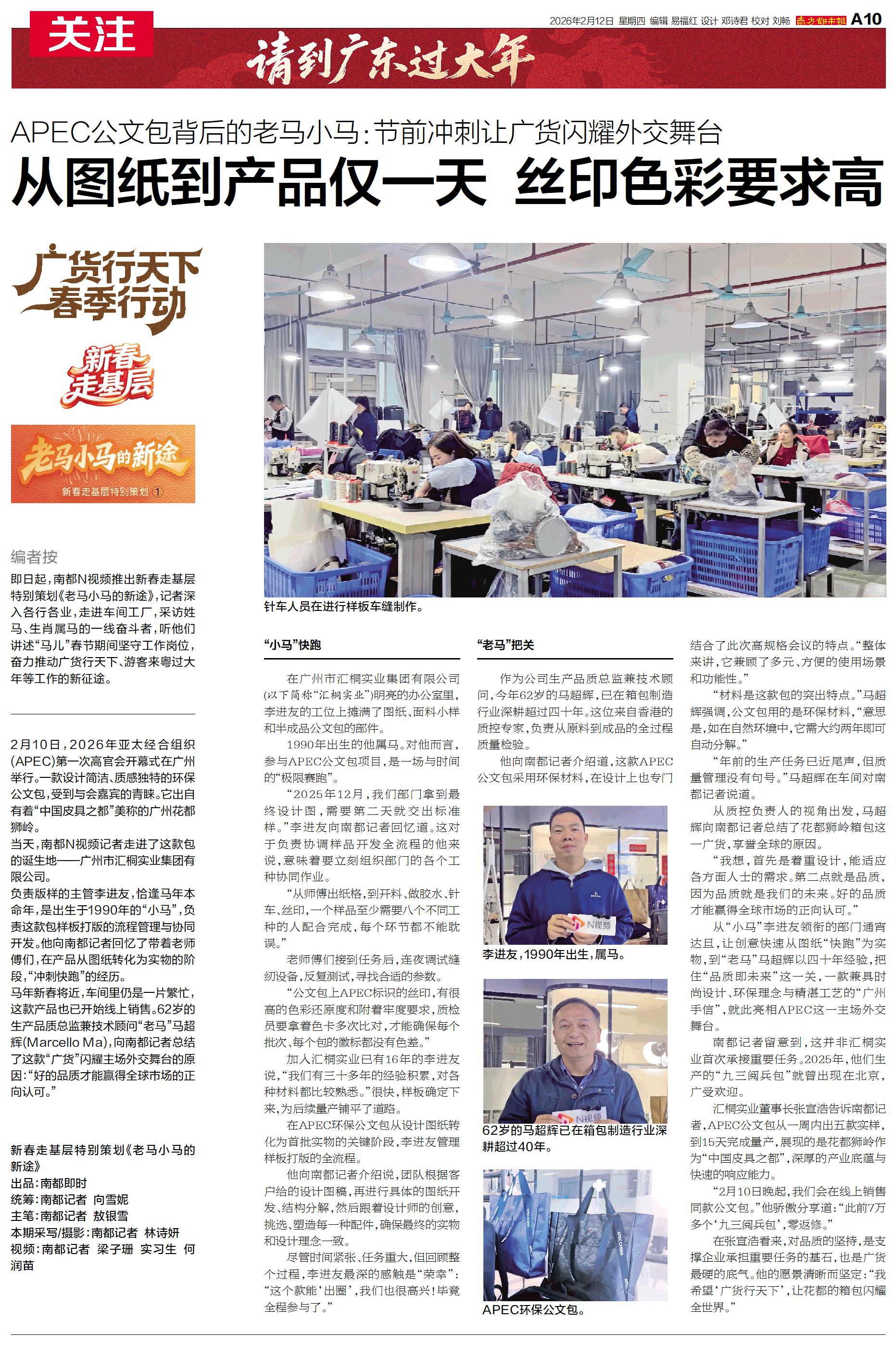 即日起,南都N视频推出新春走基层特别策划《老马小马的新途》,记者深入各行各业,走进车间工厂,采访姓马、生肖属马的一线奋斗者,听他们讲述“马儿”春节期间坚守工作岗位,奋力推动广货行天下、游客来粤过大年等
