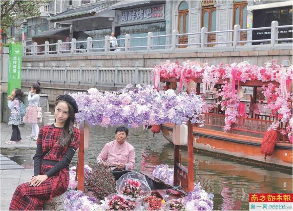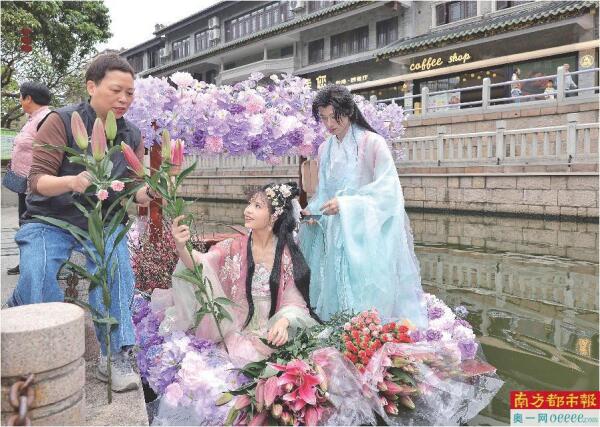 头戴花环的“大湾鸡”出现在荔枝湾涌的花墟上,它们坐上花船欣赏西关花市美景,转着圈圈和市民互动……2月12日至14日,2026年广州水上花市在广州西关永庆坊旅游区举办。今年花市重回荔枝湾,并将活动地从荔湾湖扩大至荔枝湾涌沿线、粤剧博物馆片区、永庆坊片区。