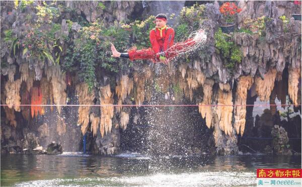 宝墨园荔景湖畔,全国扁带冠军将演绎“轻功狮踏浪”。