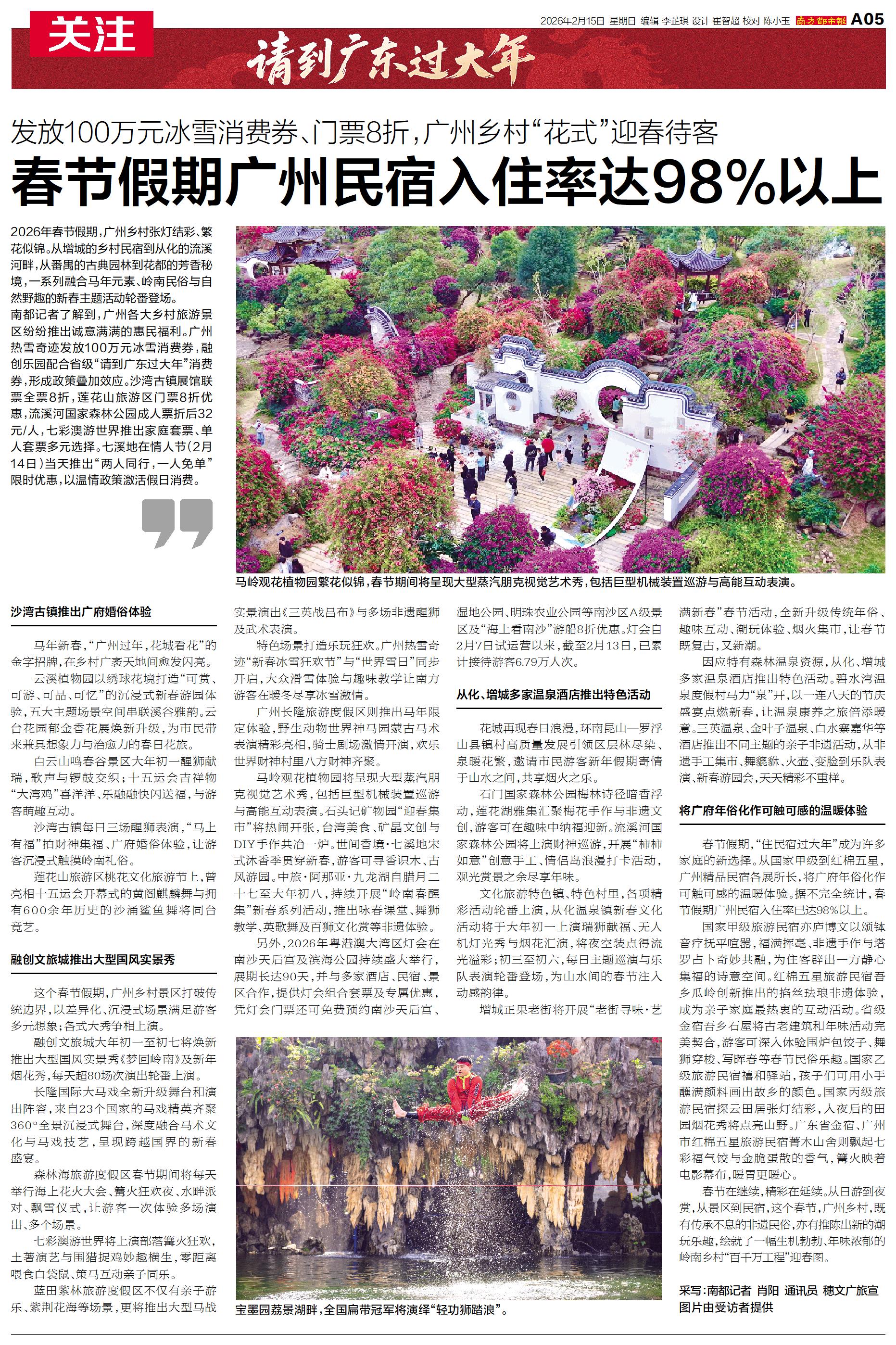 2026年春节假期,广州乡村张灯结彩、繁花似锦。从增城的乡村民宿到从化的流溪河畔,从番禺的古典园林到花都的芳香秘境,一系列融合马年元素、岭南民俗与自然野趣的新春主题活动轮番登场。