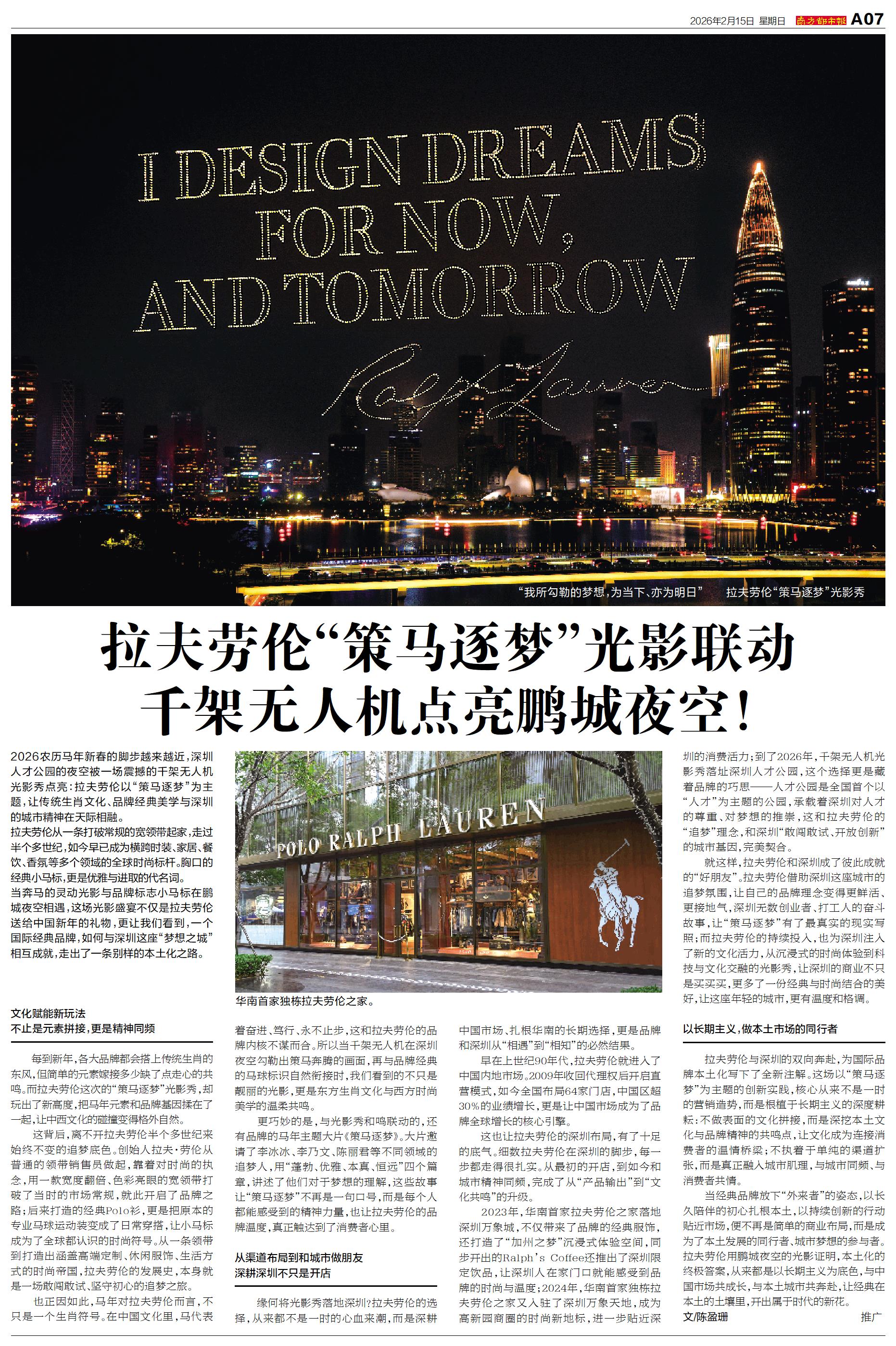 拉夫劳伦“策马逐梦”光影联动 千架无人机点亮鹏城夜空!