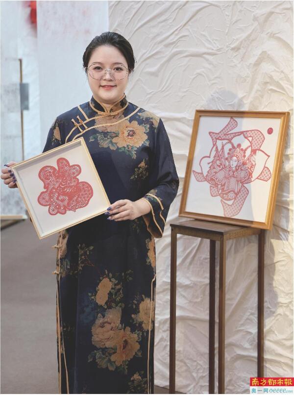 AR剪纸日历、镂空书签、香薰烛杯……一系列创意文创产品让剪纸技艺无缝融入日常。2019年,他们忐忑地试水首款文创日历,一开始只敢印制10万册,让他们惊喜的是,剪纸日历一上市便迅速售罄。此外,他们团队创作的剪纸服装甚至实现了“将非遗穿在身上”。“我们选用特殊纸张,使其具备布料的特性,制成的剪纸服装不仅可直接穿着,还能在舞台上展现独特的艺术效果。”练晓红介绍道。