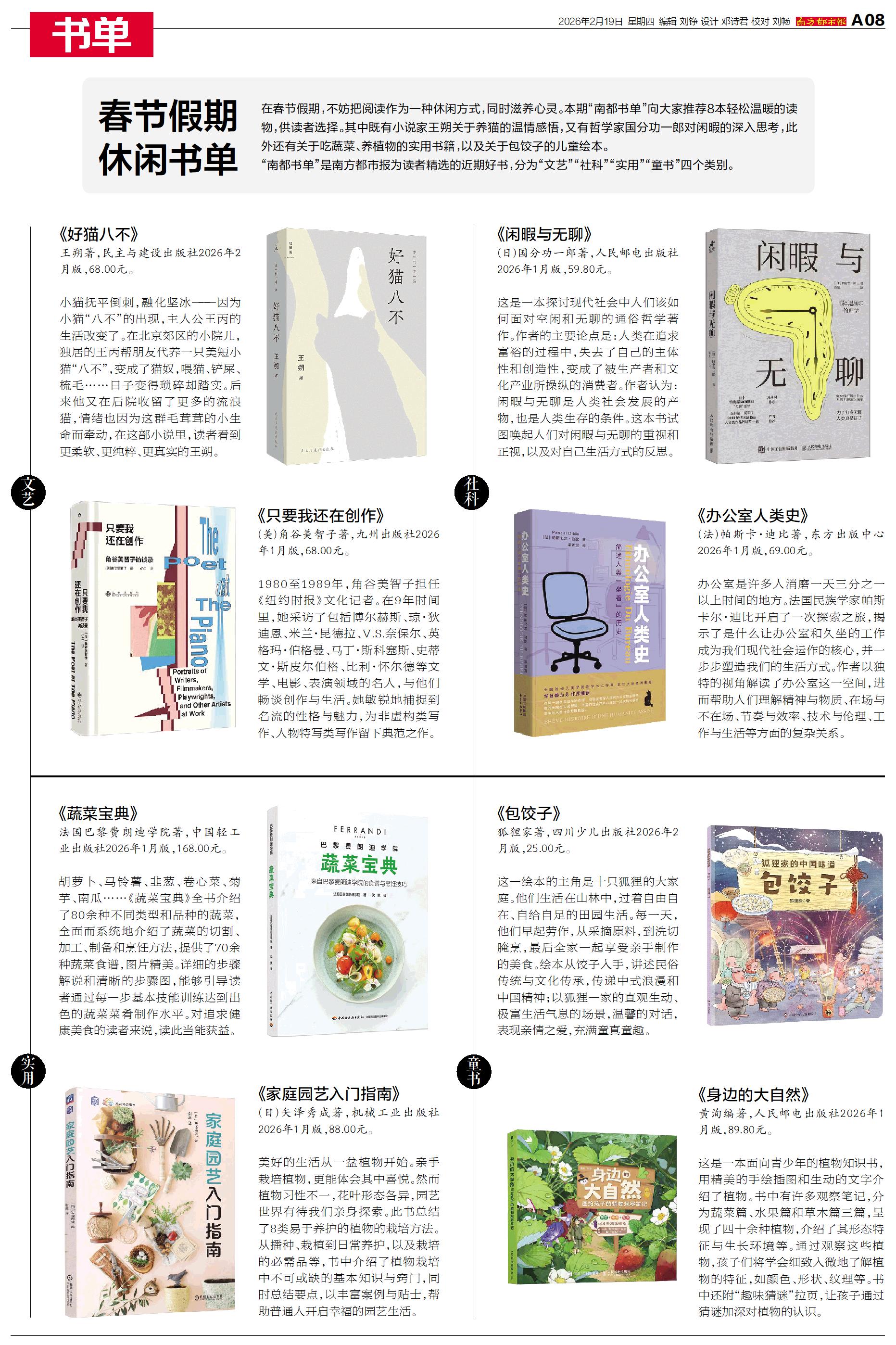 本期“南都书单”向大家推荐8本轻松温暖的读物,供读者选择。