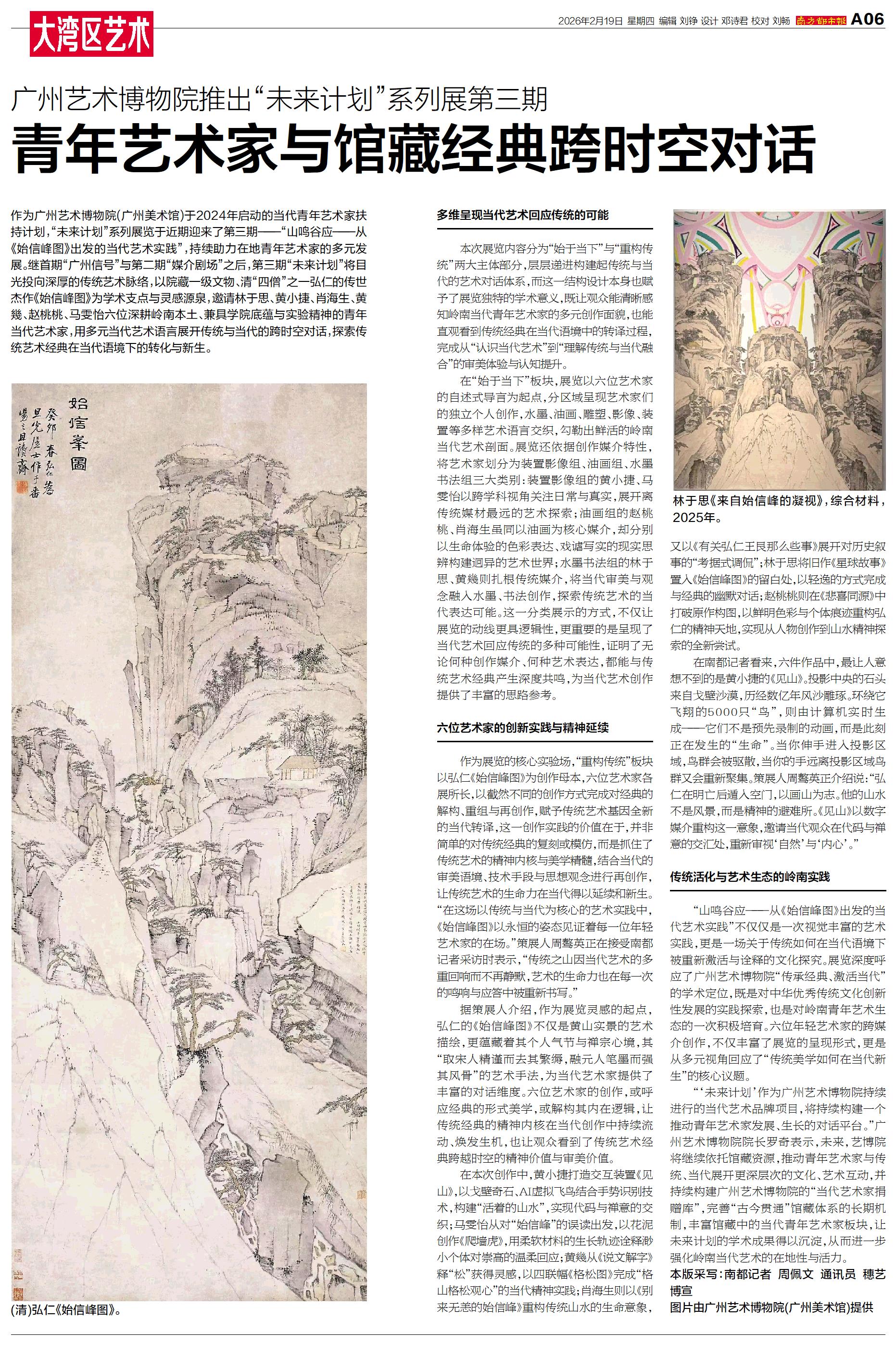 作为广州艺术博物院(广州美术馆)于2024年启动的当代青年艺术家扶持计划,“未来计划”系列展览于近期迎来了第三期——“山鸣谷应——从《始信峰图》出发的当代艺术实践”,持续助力在地青年艺术家的多元发展。