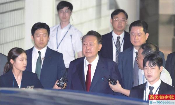 2025年7月9日晚,尹锡悦接受讯问后走出首尔中央地方法院(资料图)。 新华社发