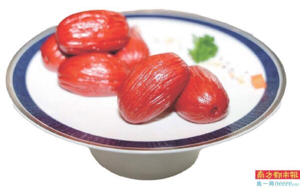 “看似红枣,其实不是红枣,吃起来就是红枣,这就叫做象形点心。”完成虾饺的制作后,在现场,郑渤接着做了一款象形红枣果,面团在这一双巧手中脱胎换骨,变成了几可乱真的“南国红枣”,静静地躺在蒸笼里。