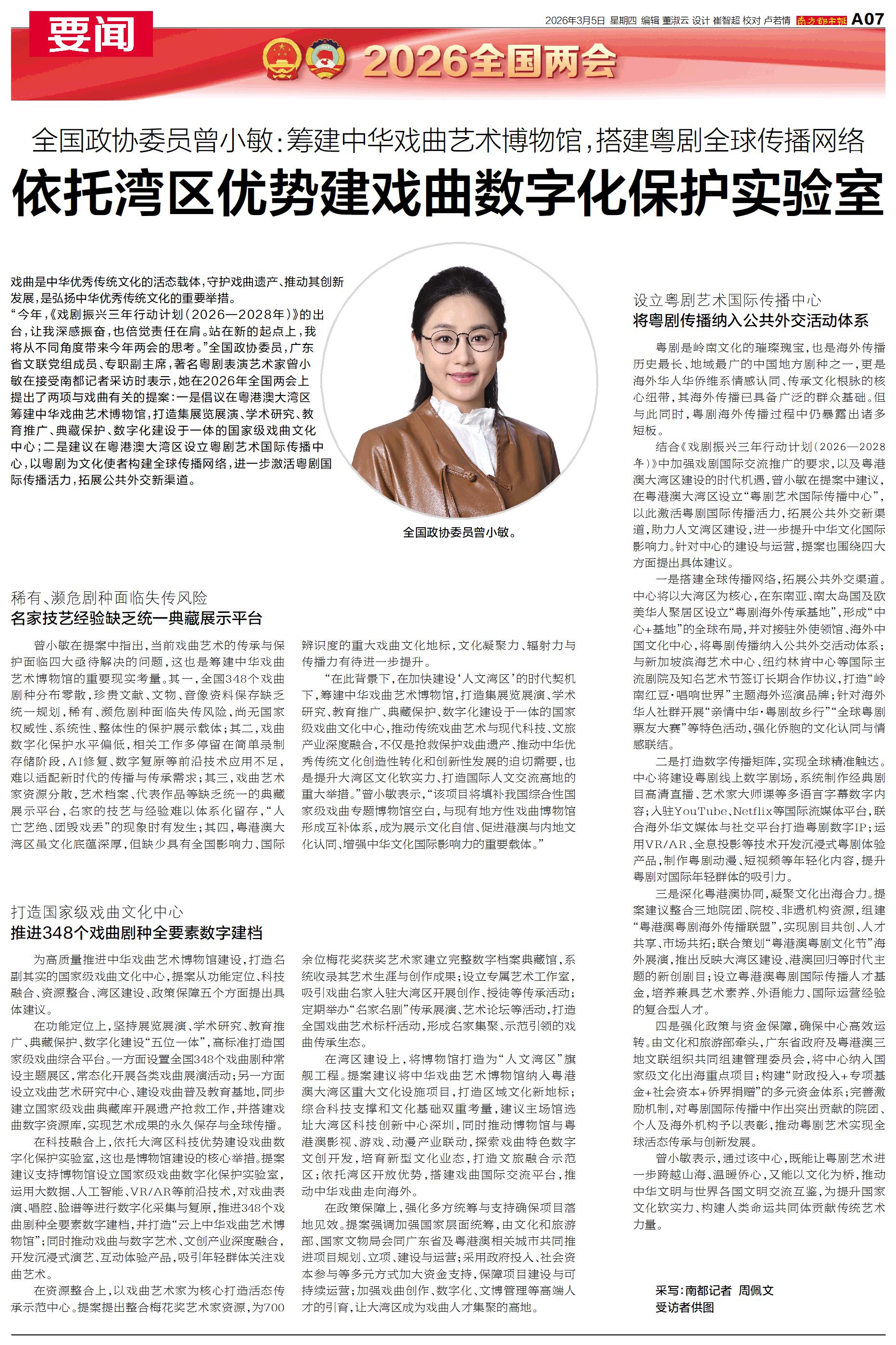 依托湾区优势建戏曲数字化保护实验室
