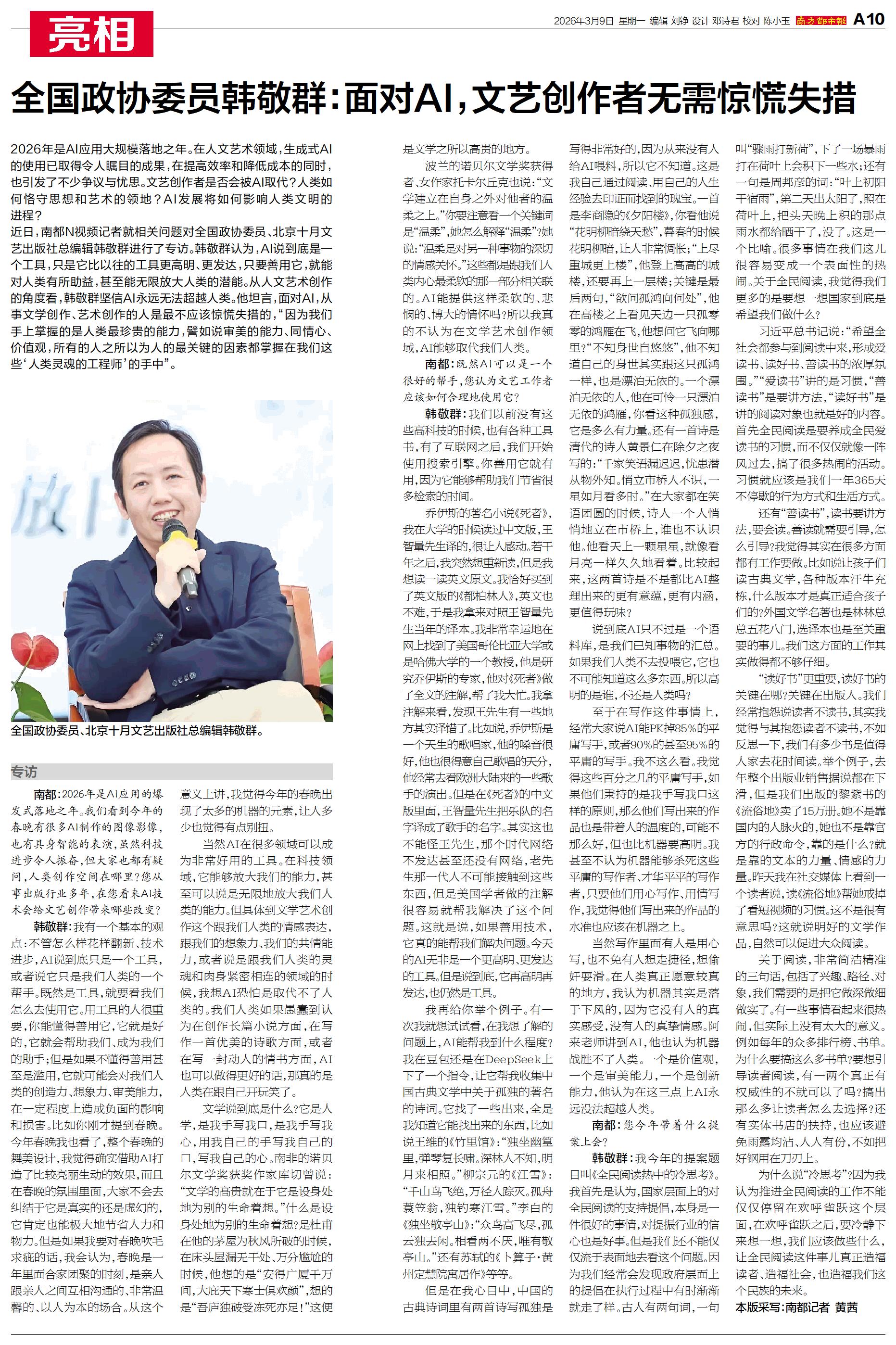 全国政协委员韩敬群:面对AI,文艺创作者无需惊慌失措