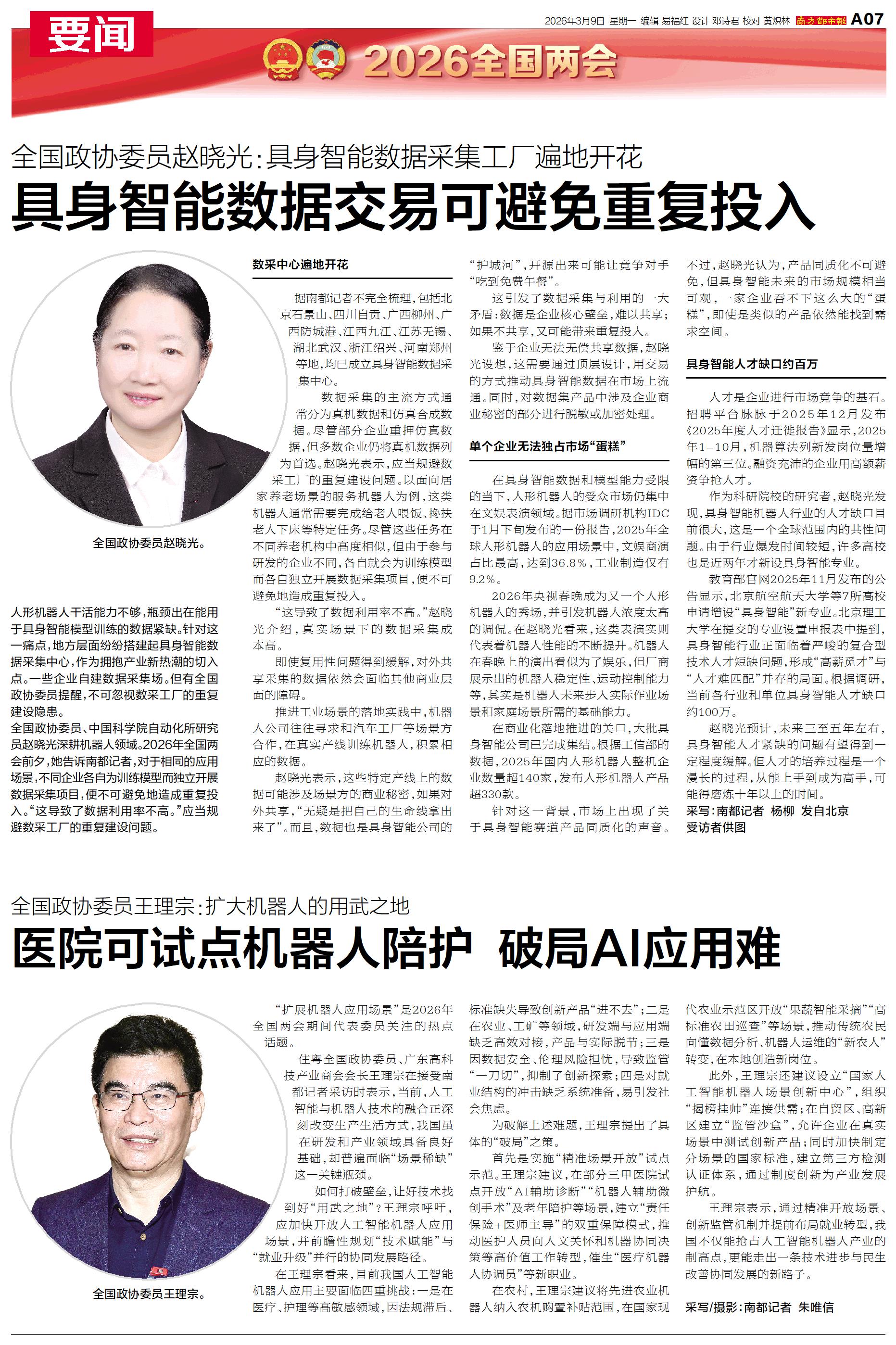 “扩展机器人应用场景”是2026年全国两会期间代表委员关注的热点话题。