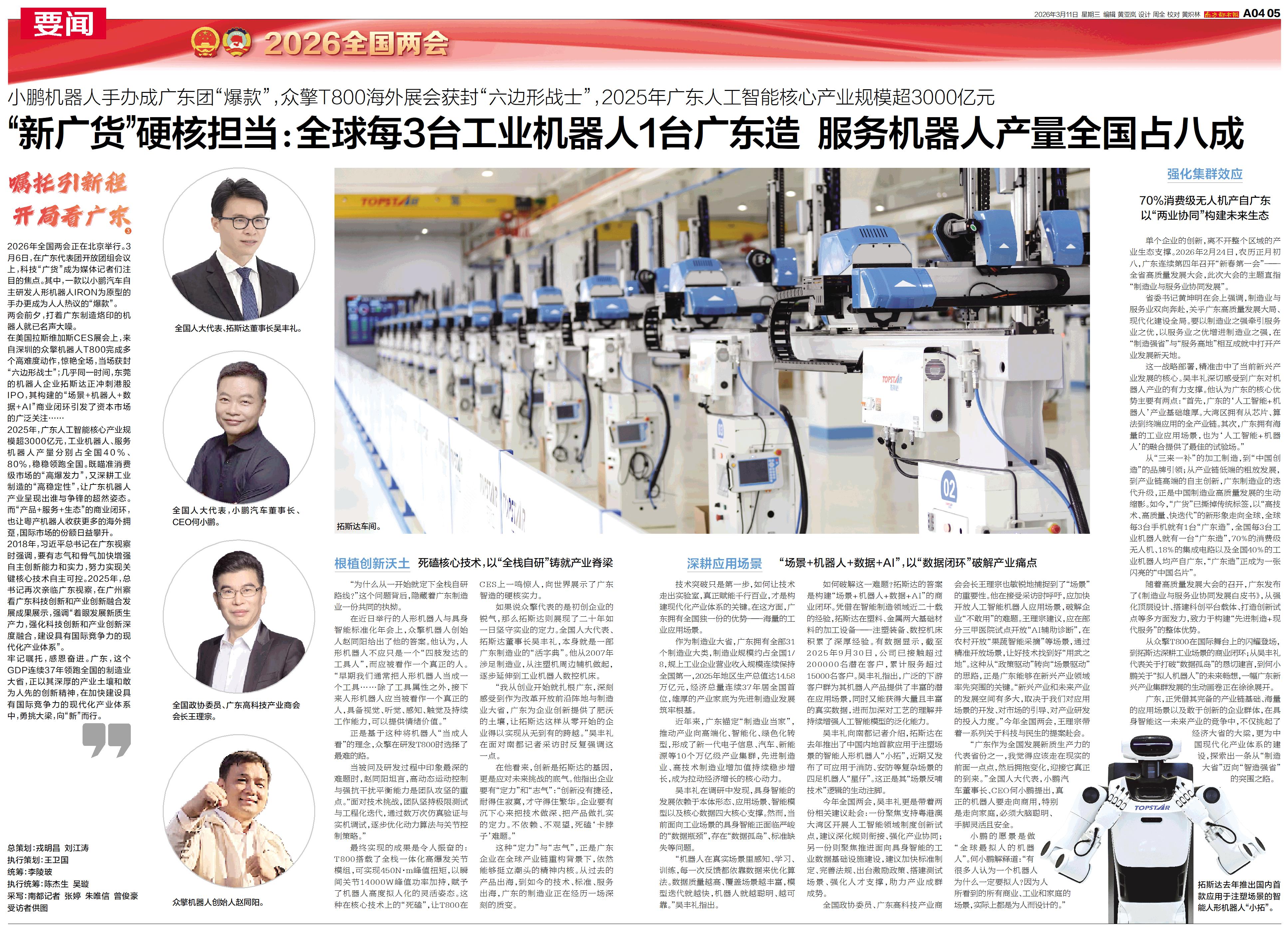 “新广货”硬核担当:全球每3台工业机器人1台广东造 服务机器人产量全国占八成