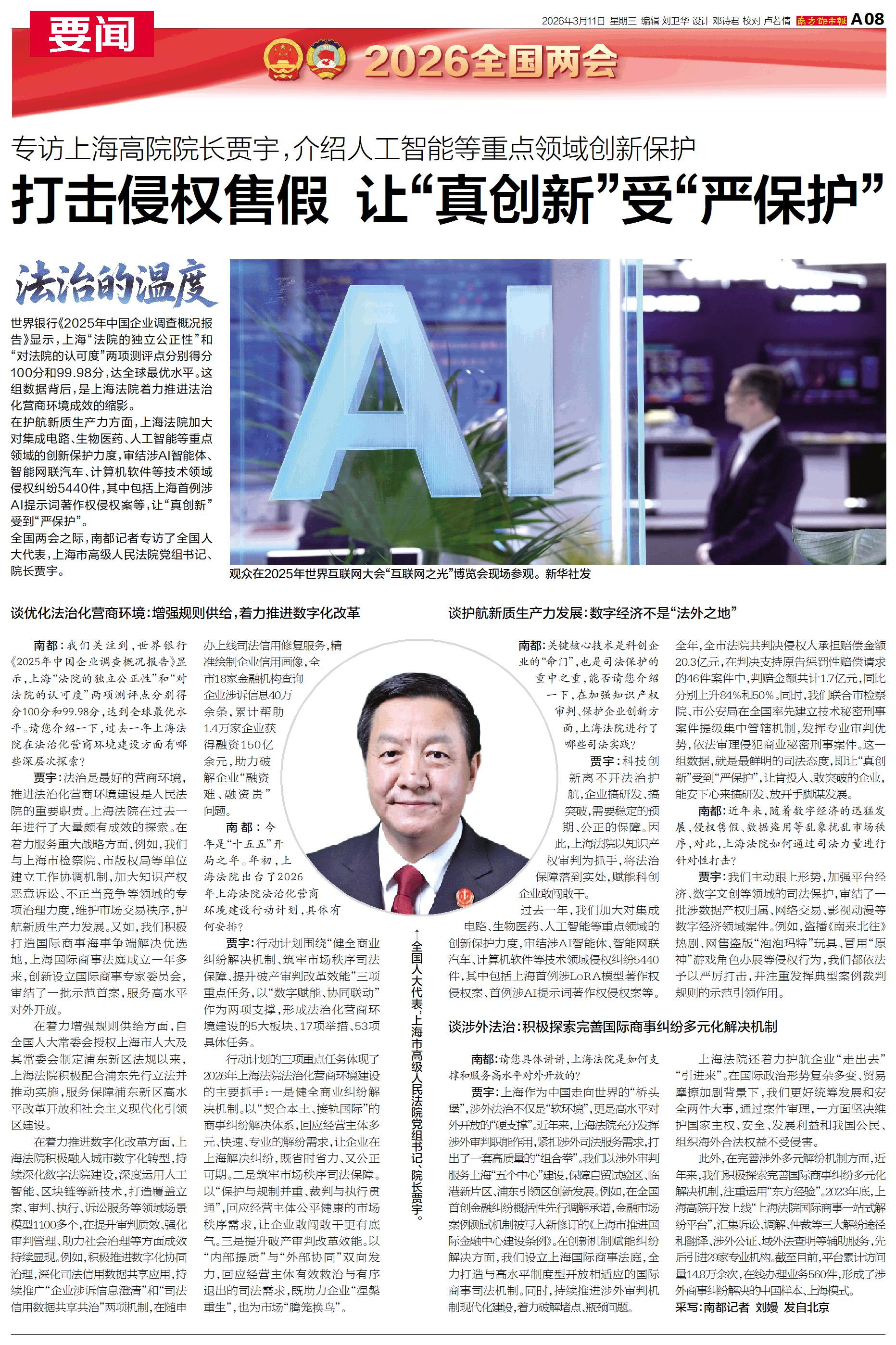 世界银行《2025年中国企业调查概况报告》显示,上海“法院的独立公正性”和“对法院的认可度”两项测评点分别得分100分和99.98分,达全球最优水平。