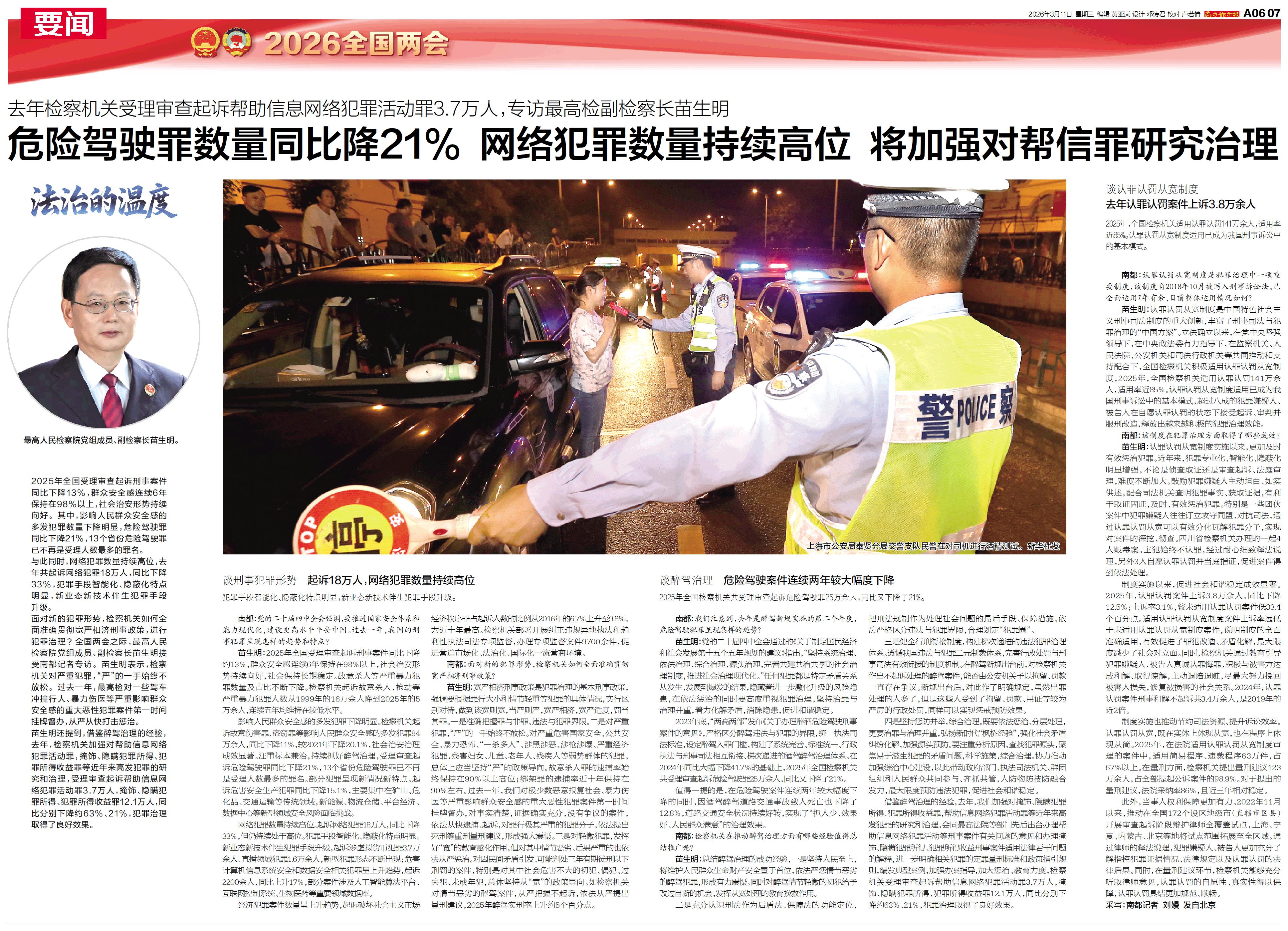 危险驾驶罪数量同比降21% 网络犯罪数量持续高位 将加强对帮信罪研究治理