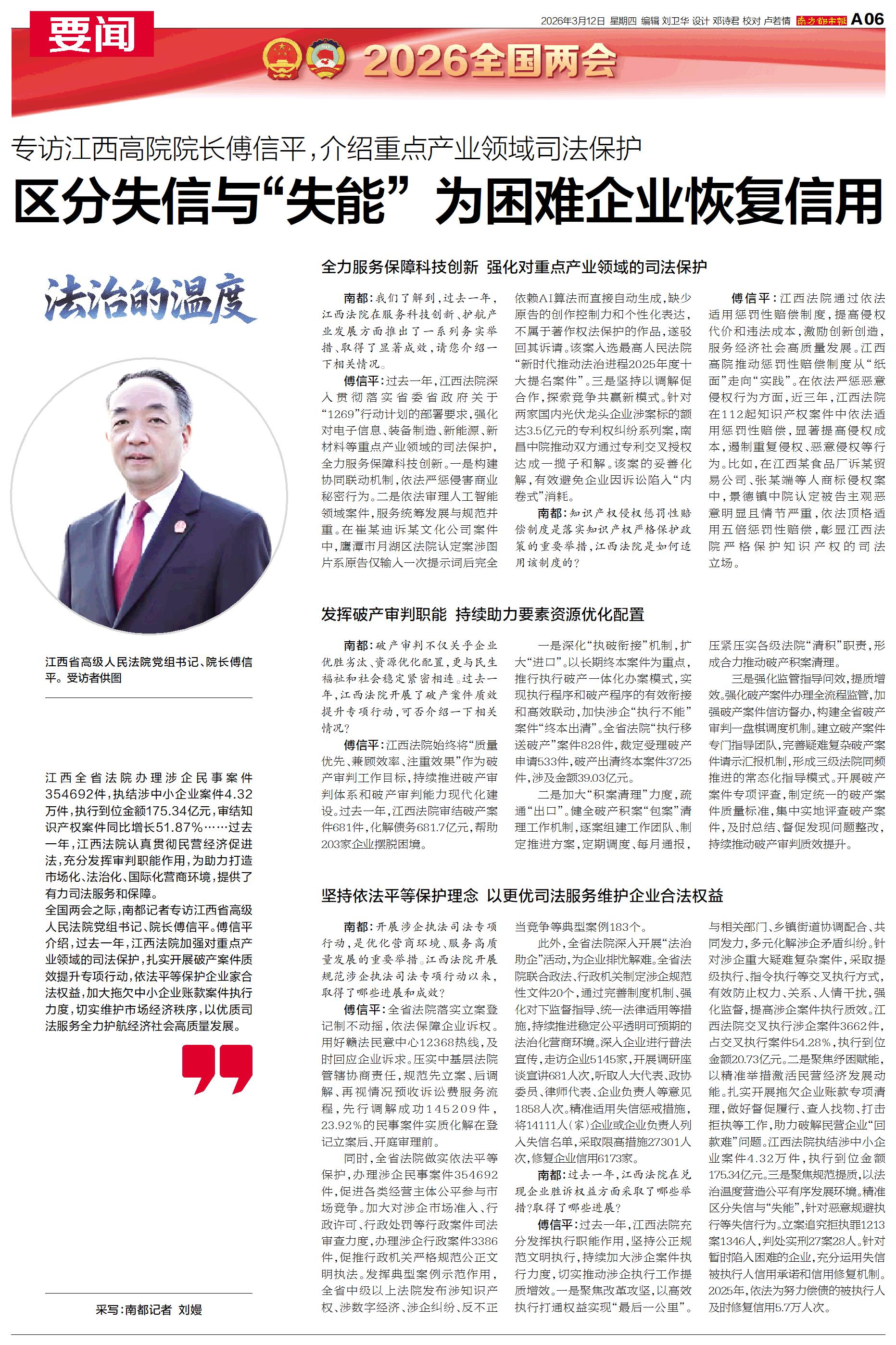过去一年,江西法院认真贯彻民营经济促进法,充分发挥审判职能作用,为助力打造市场化、法治化、国际化营商环境,提供了有力司法服务和保障。