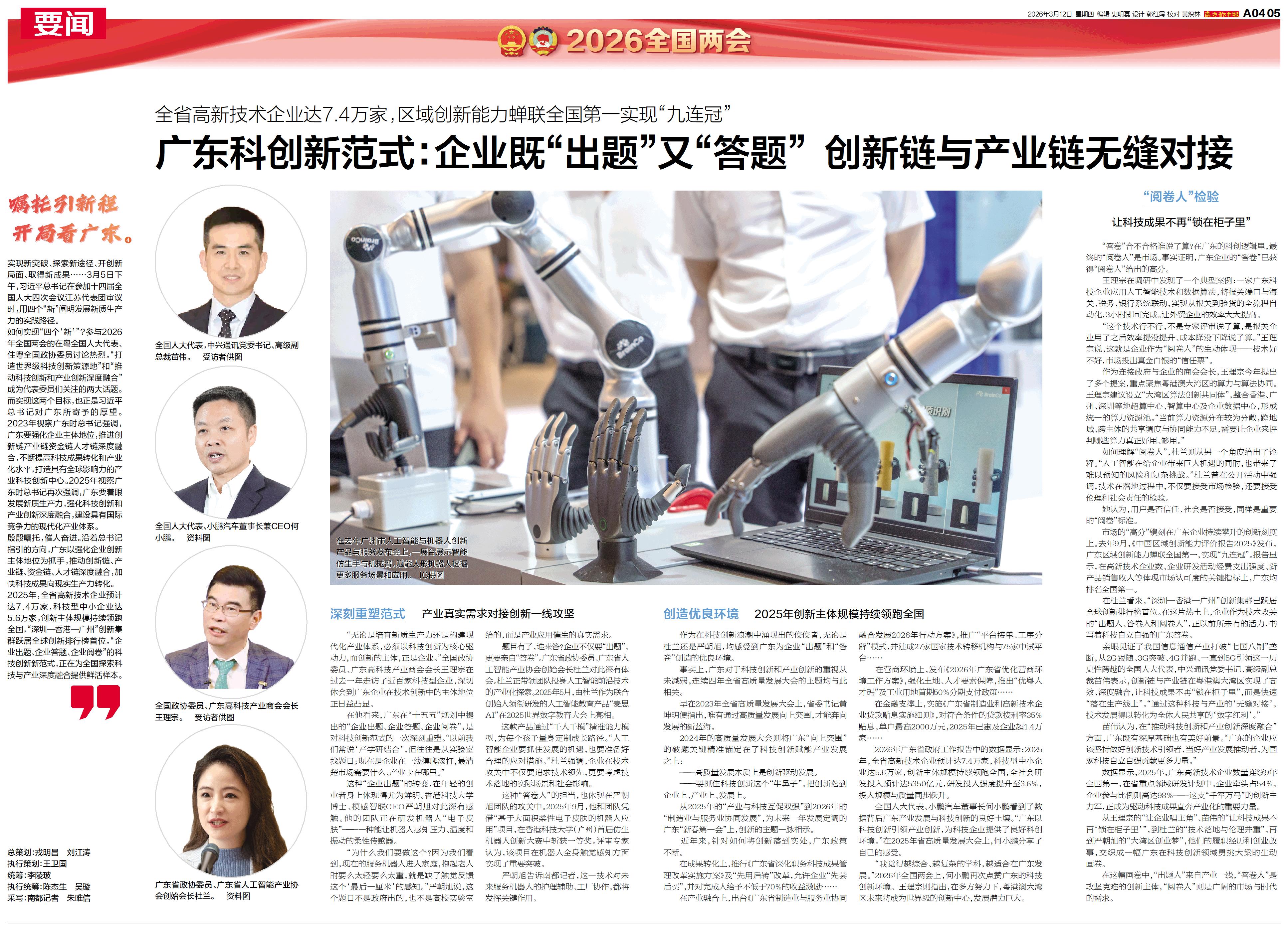 广东科创新范式:企业既“出题”又“答题” 创新链与产业链无缝对接