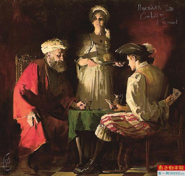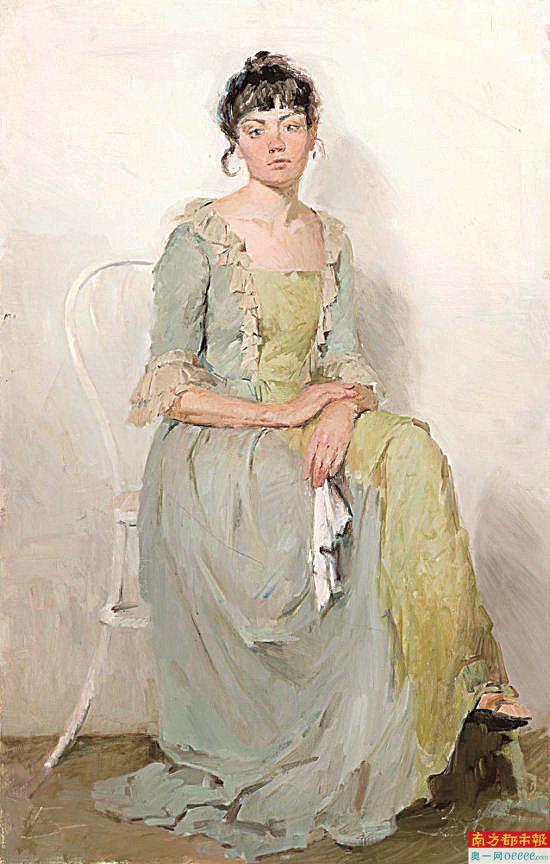 《穿欧洲服饰的女子》,塔玛拉·卡克舍娃,70×110cm,油画。