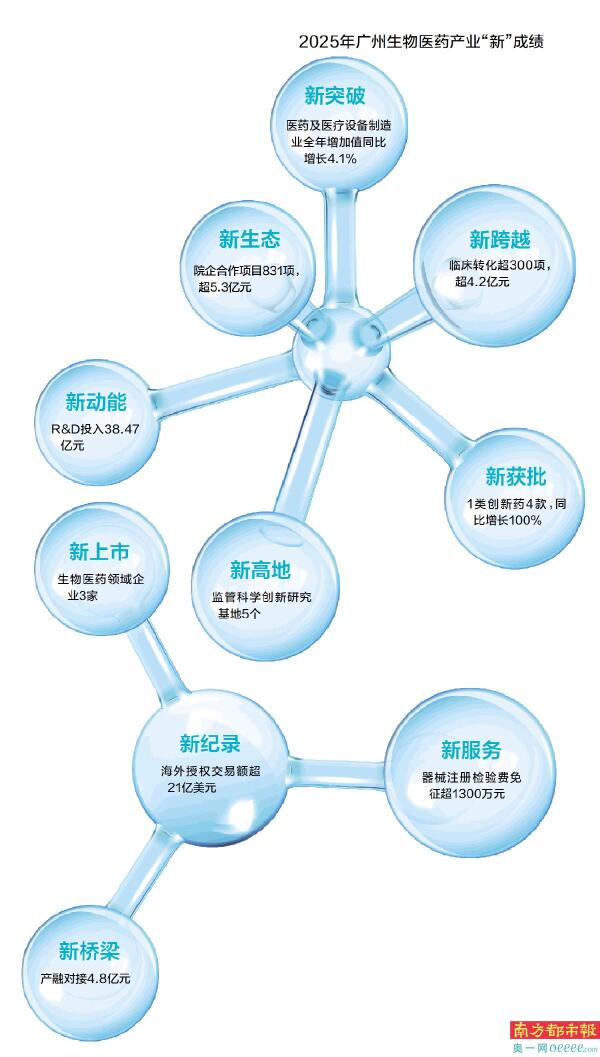 从政策的精准导航,到平台的源头蓄能,再到服务的快速响应,广州正以一套贯穿创新与产业化全链条的支撑体系,降低创新的不确定性,提升企业的获得感,让这座城市的生物医药产业生态更具韧性与吸引力。2025年,广州生物医药新落地高质量项目288个,总投资超500亿元,预计达产年产值544.4亿元,为2026年产业发力铺就了厚实路基。