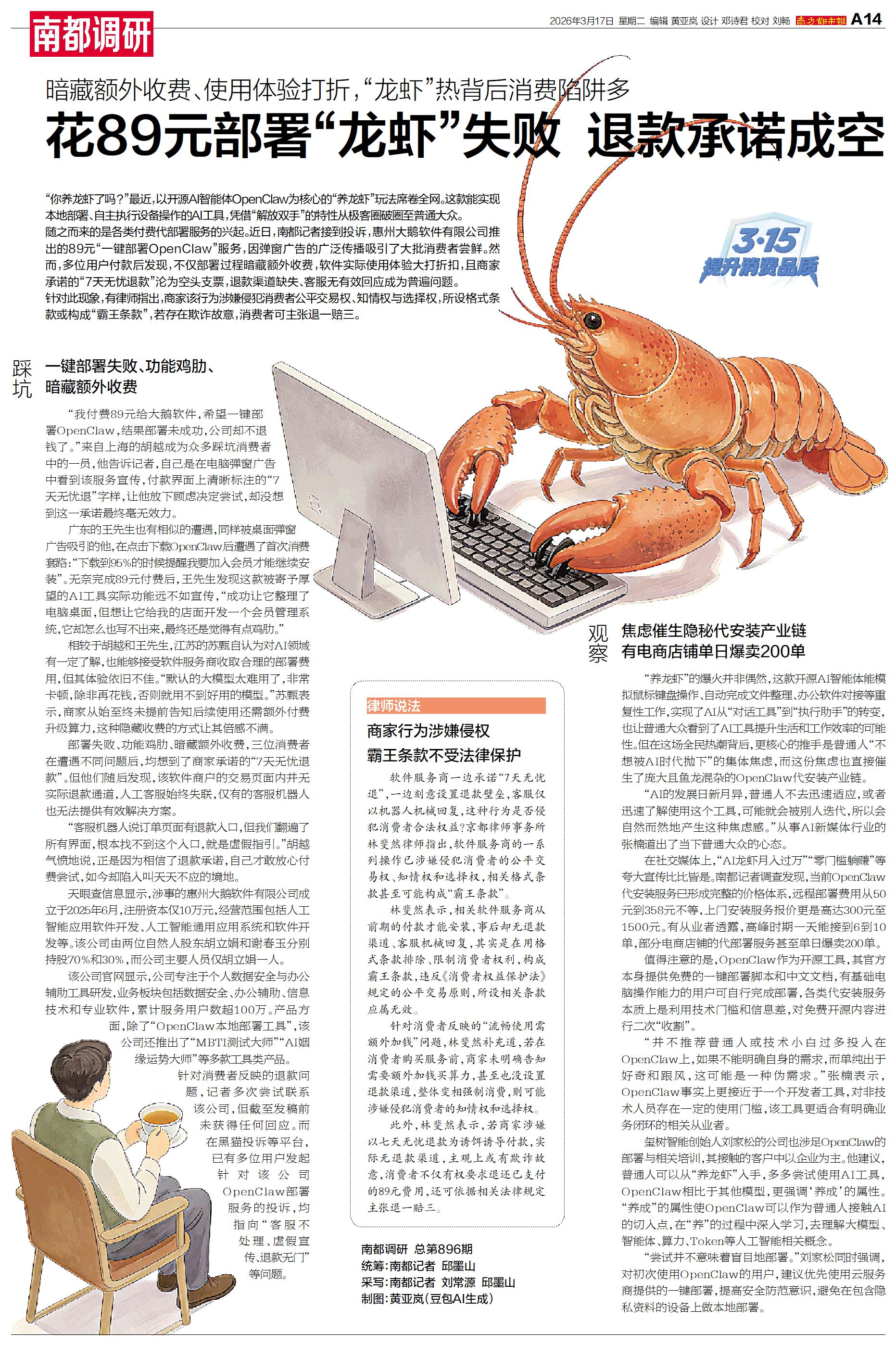 花89元部署“龙虾”失败 退款承诺成空