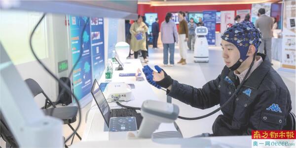 工程师演示脑机接口手部运动反馈康复训练系统。 新华社发