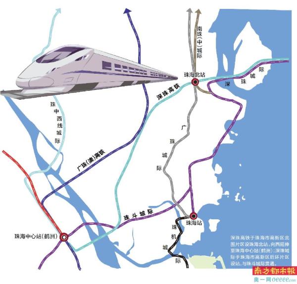 城际铁路(深珠城际):始于深圳前海站,全长约40公里,设计时速200公里。