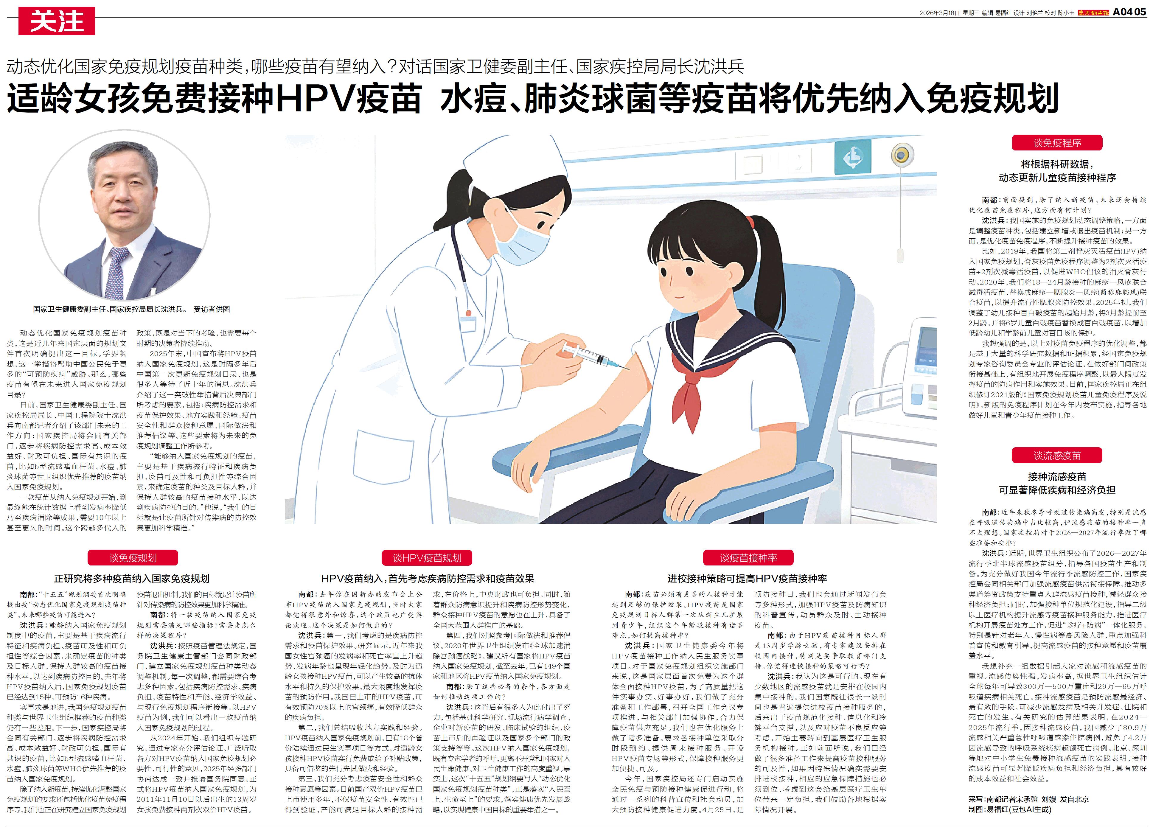 适龄女孩免费接种HPV疫苗 水痘、肺炎球菌等疫苗将优先纳入免疫规划
