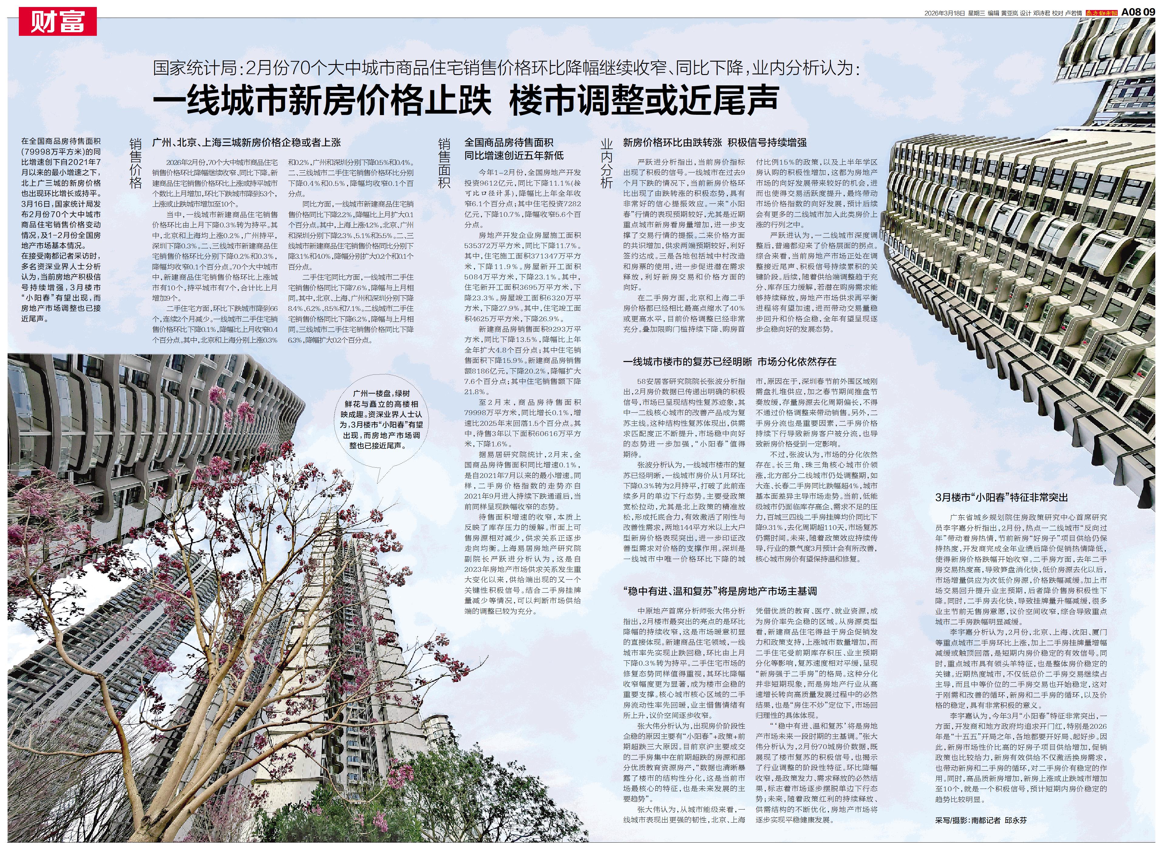 3月16日,国家统计局发布2月份70个大中城市商品住宅销售价格变动情况,及1-2月份全国房地产市场基本情况。