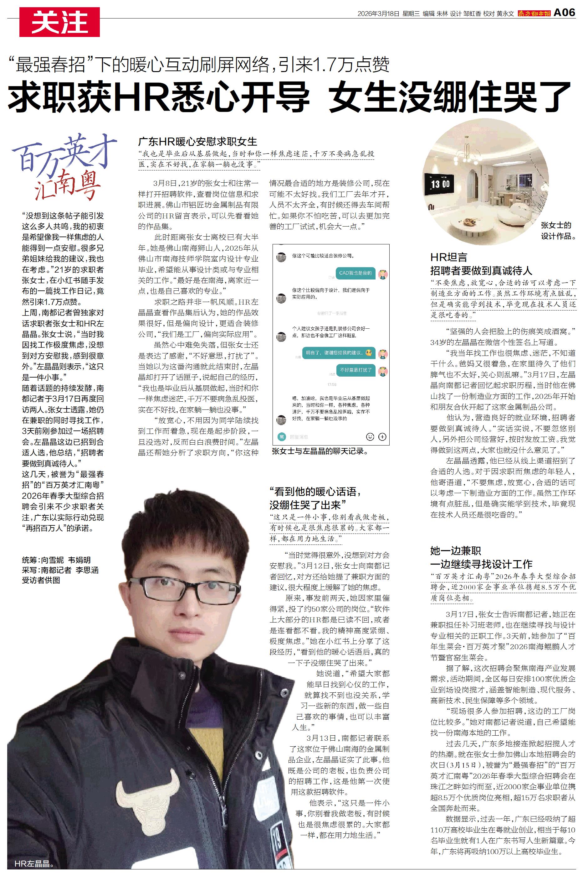 求职获HR悉心开导 女生没绷住哭了