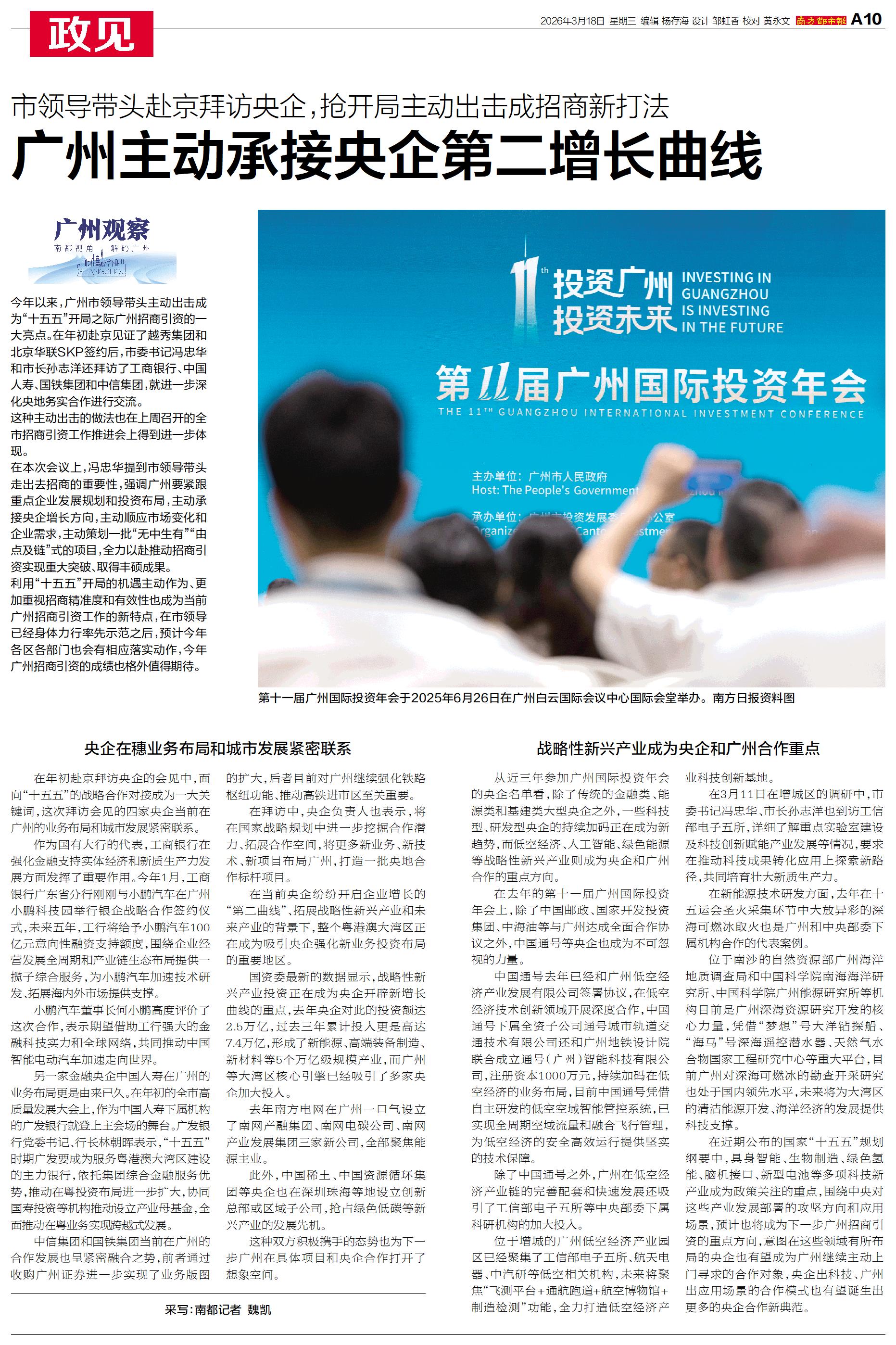 今年以来,广州市领导带头主动出击成为“十五五”开局之际广州招商引资的一大亮点。