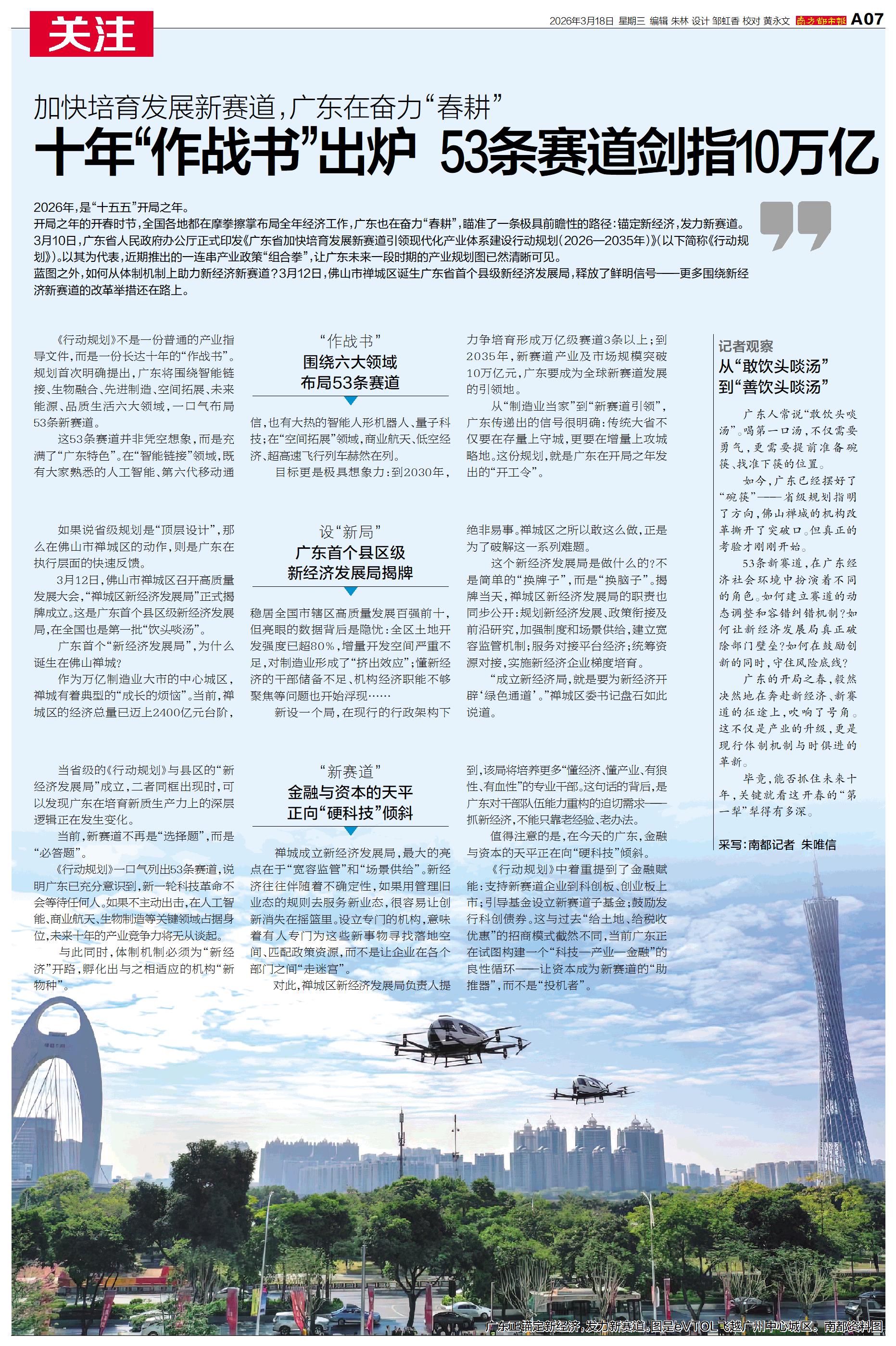开局之年的开春时节,全国各地都在摩拳擦掌布局全年经济工作,广东也在奋力“春耕”,瞄准了一条极具前瞻性的路径:锚定新经济,发力新赛道。