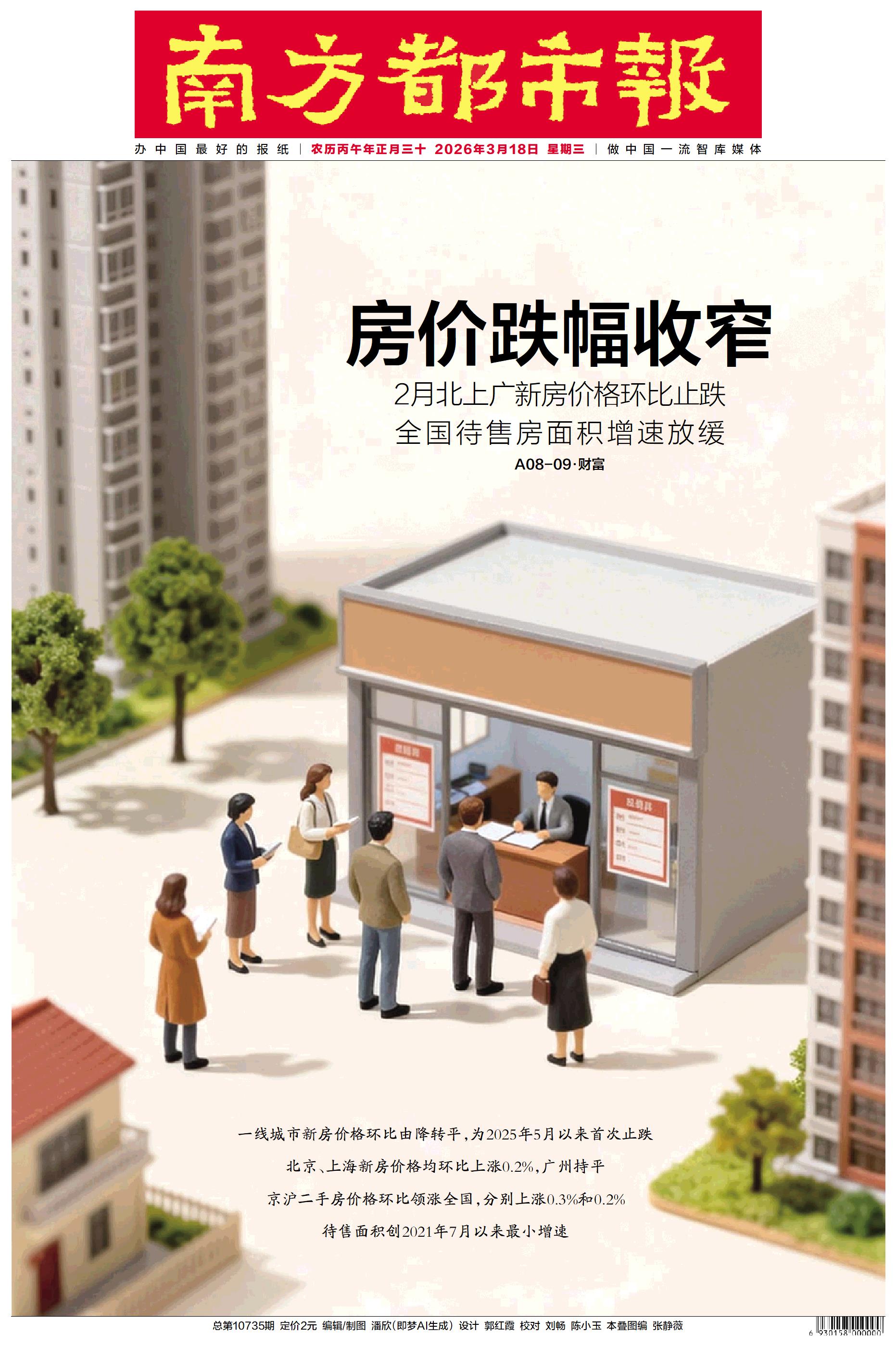 2月北上广新房价格环比止跌 ,全国待售房面积增速放缓。