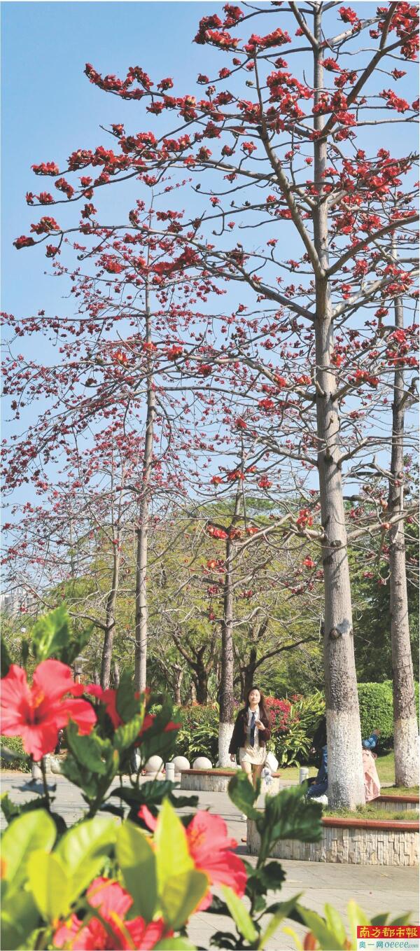 广州黄埔区市民广场上的木棉树盛开。 南都记者 梁炜培 摄