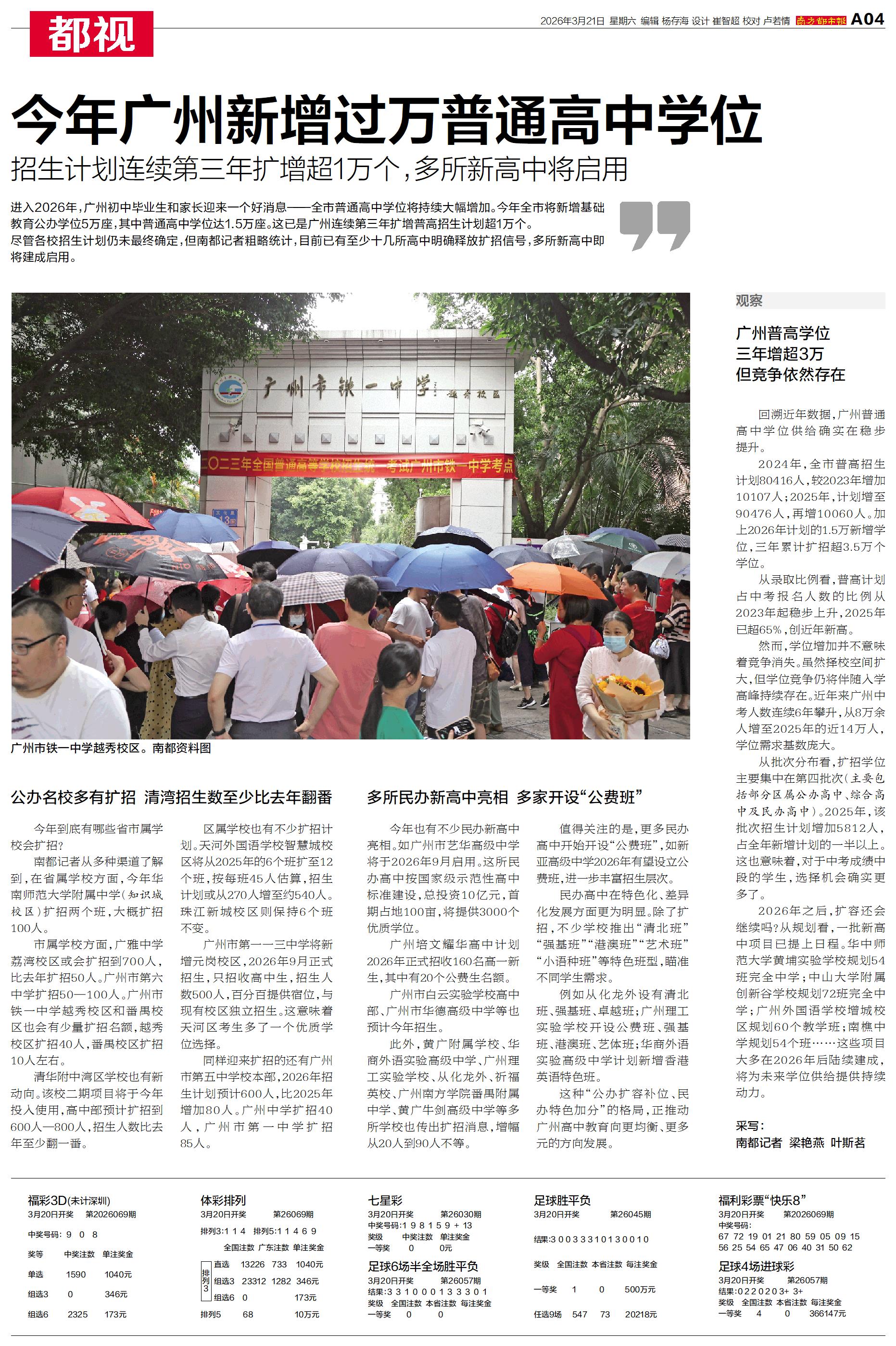 进入2026年,广州初中毕业生和家长迎来一个好消息——全市普通高中学位将持续大幅增加。