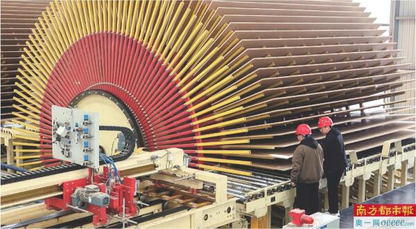 3月16日,工人在山东省临沂市平邑县一家木业企业FOSB板材生产线上工作。 新华社发