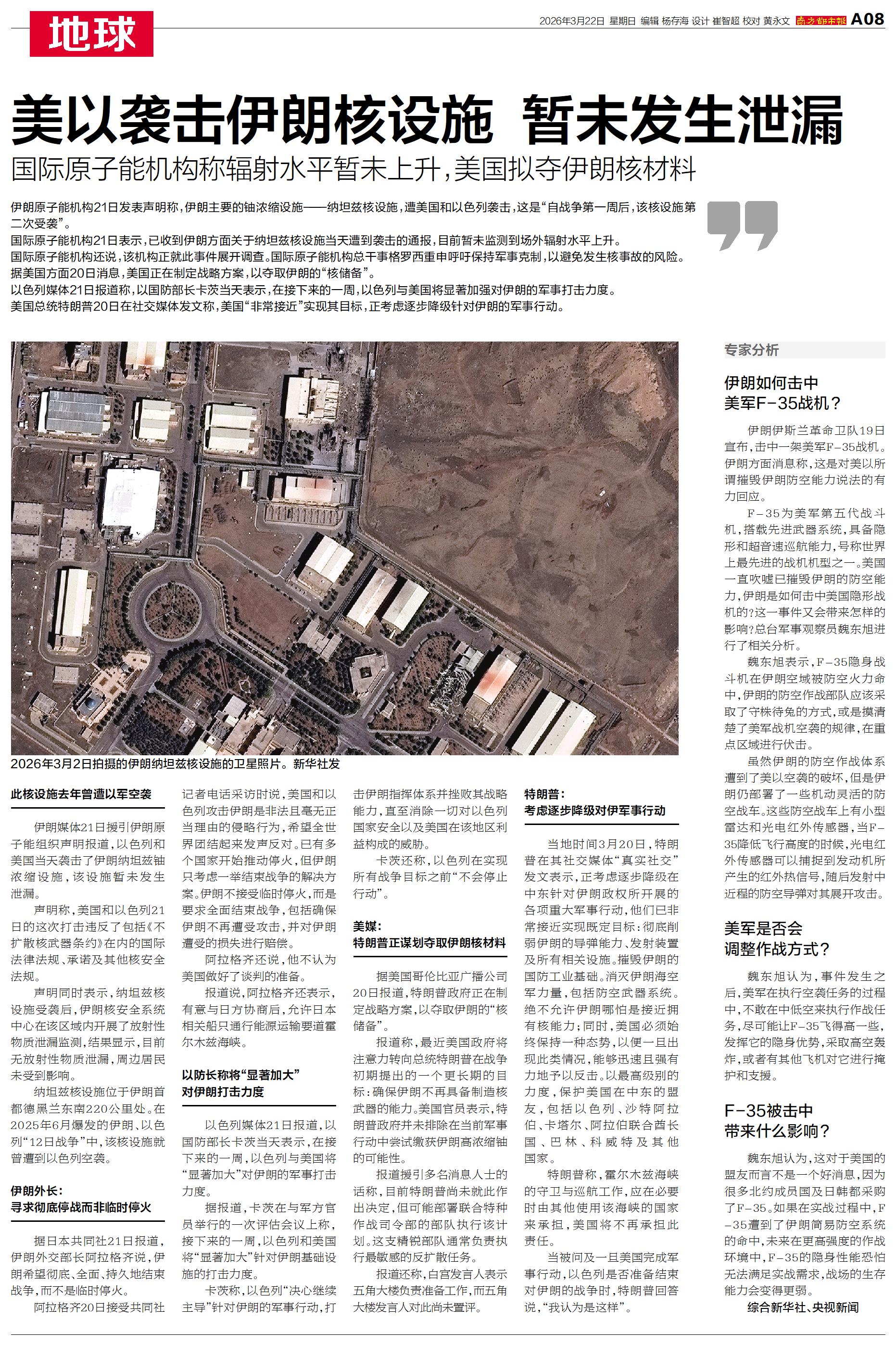伊朗原子能机构21日发表声明称,伊朗主要的铀浓缩设施——纳坦兹核设施,遭美国和以色列袭击,这是“自战争第一周后,该核设施第二次受袭”。