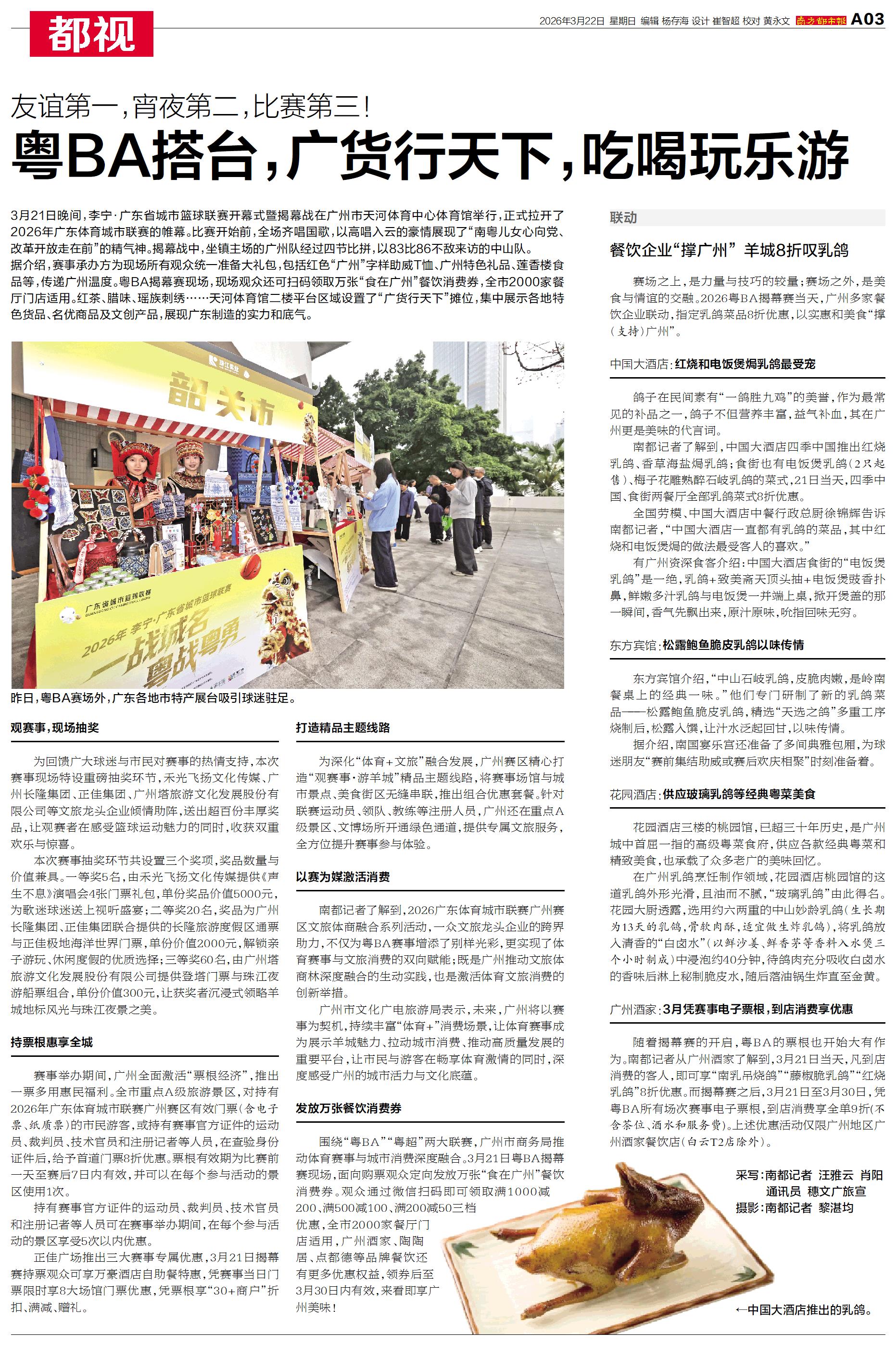 3月21日晚间,李宁·广东省城市篮球联赛开幕式暨揭幕战在广州市天河体育中心体育馆举行,正式拉开了2026年广东体育城市联赛的帷幕。