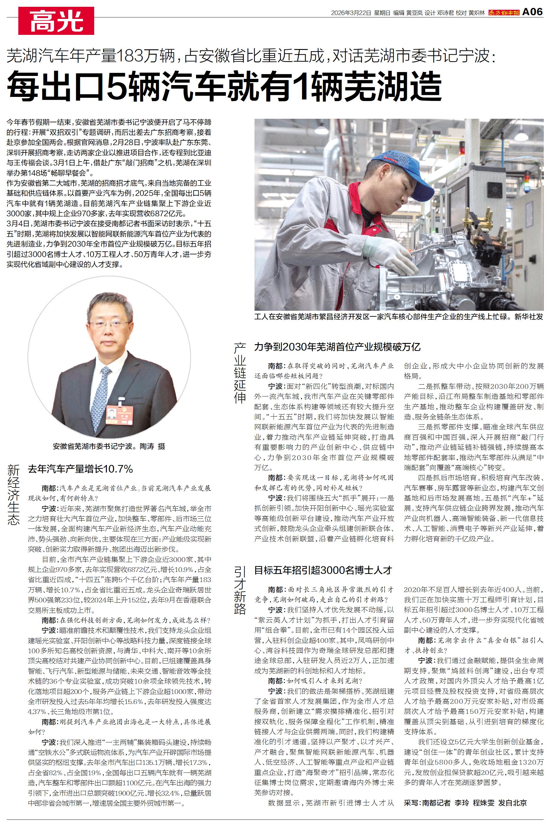 今年春节假期一结束,安徽省芜湖市委书记宁波便开启了马不停蹄的行程:开展“双招双引”专题调研,而后出差去广东招商考察,接着赴京参加全国两会。