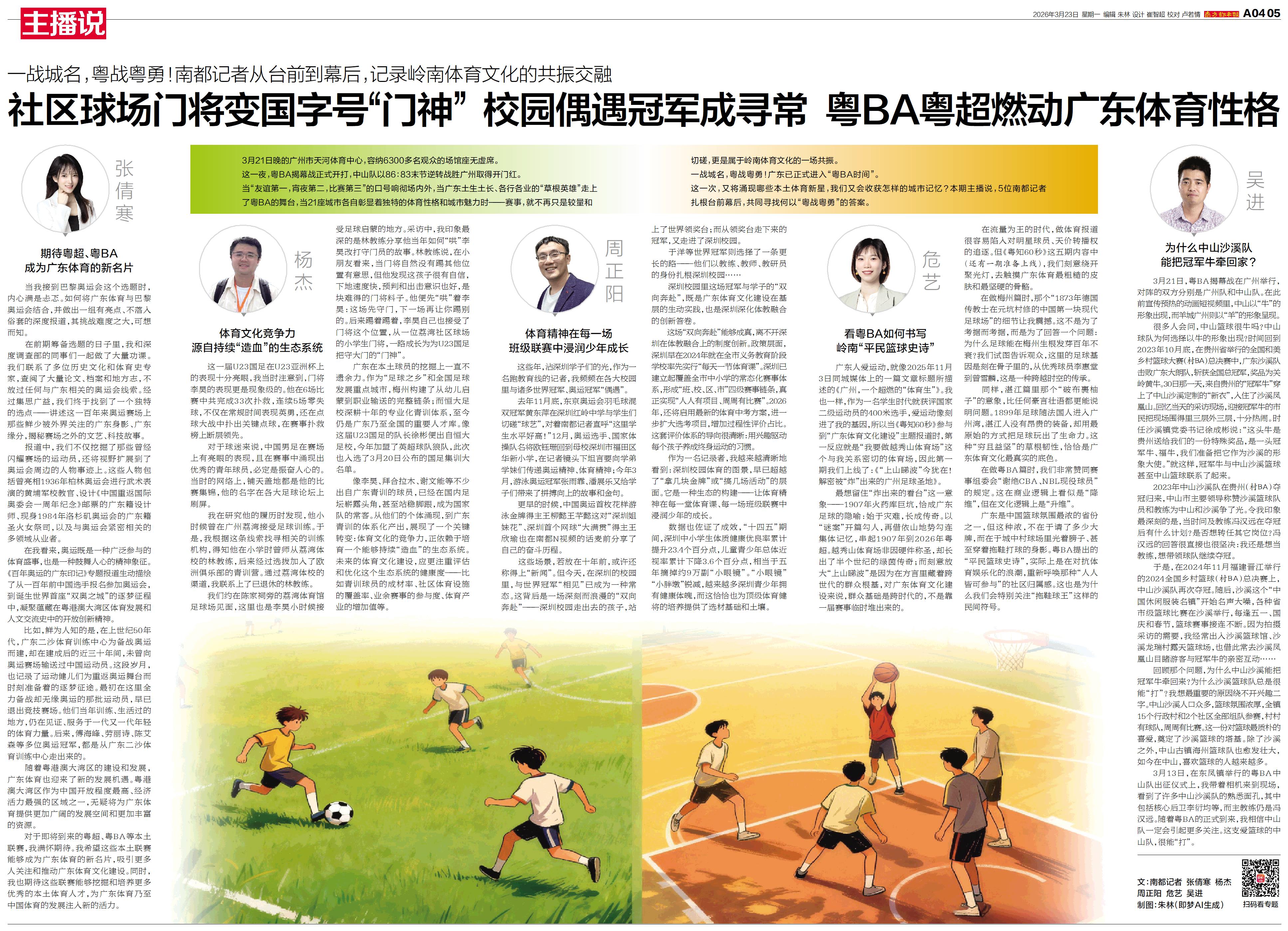 社区球场门将变国字号“门神” 校园偶遇冠军成寻常 粤BA粤超燃动广东体育性格