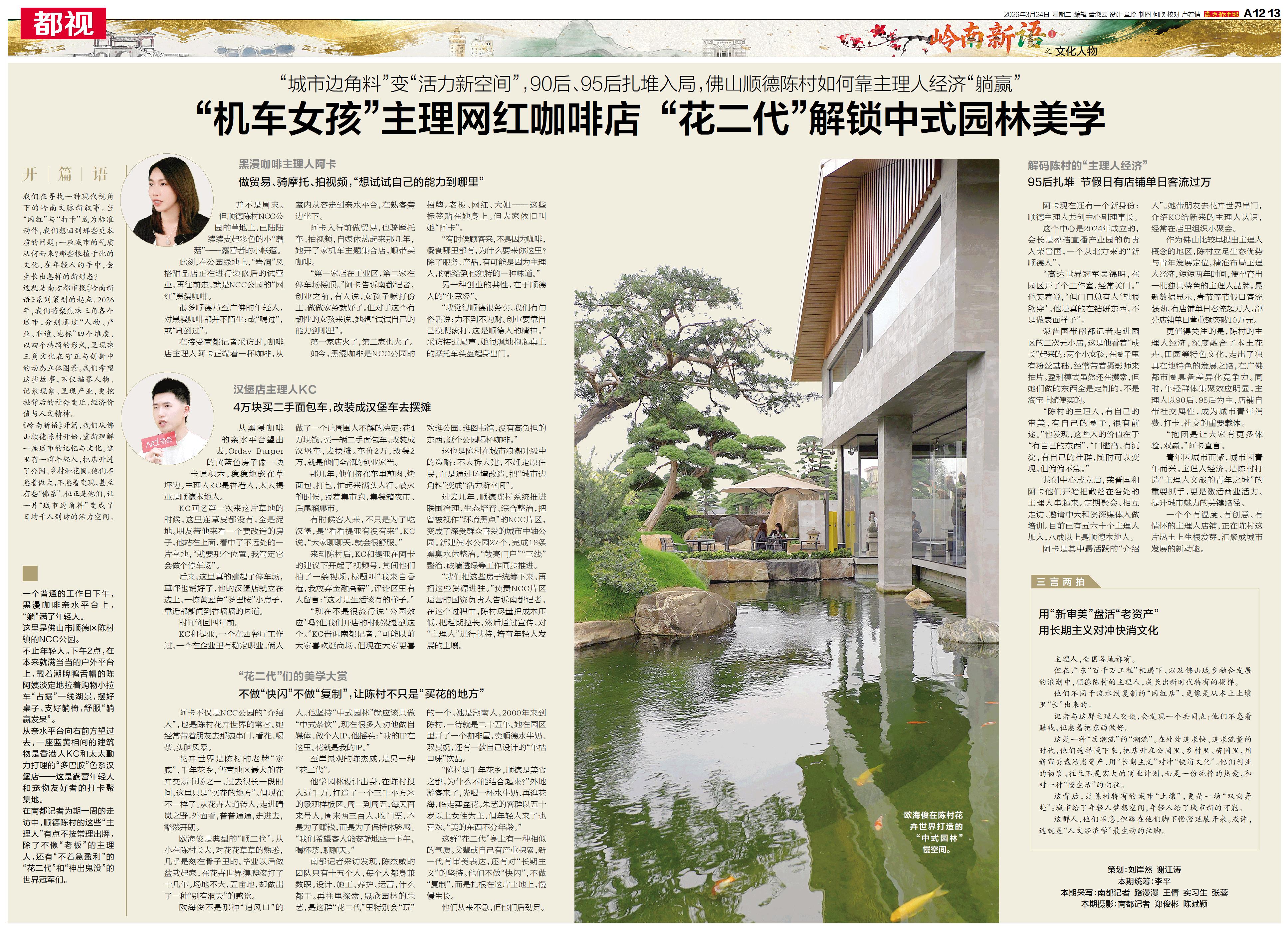 《岭南新语》开篇,我们从佛山顺德陈村开始,重新理解一座城市的记忆与文化。这里有一群年轻人,把店开进了公园、乡村和花圃。