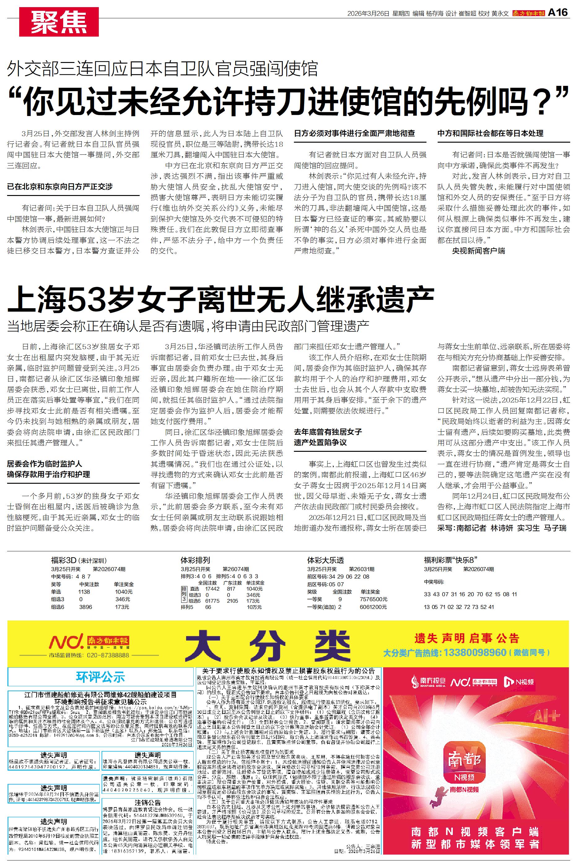 3月25日,外交部发言人林剑主持例行记者会。有记者就日本自卫队官员强闯中国驻日本大使馆一事提问,外交部三连回应。