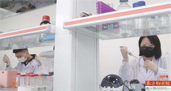 广州生物岛实验室内,研究人员正操作实验。南都记者 冯宙峰 摄