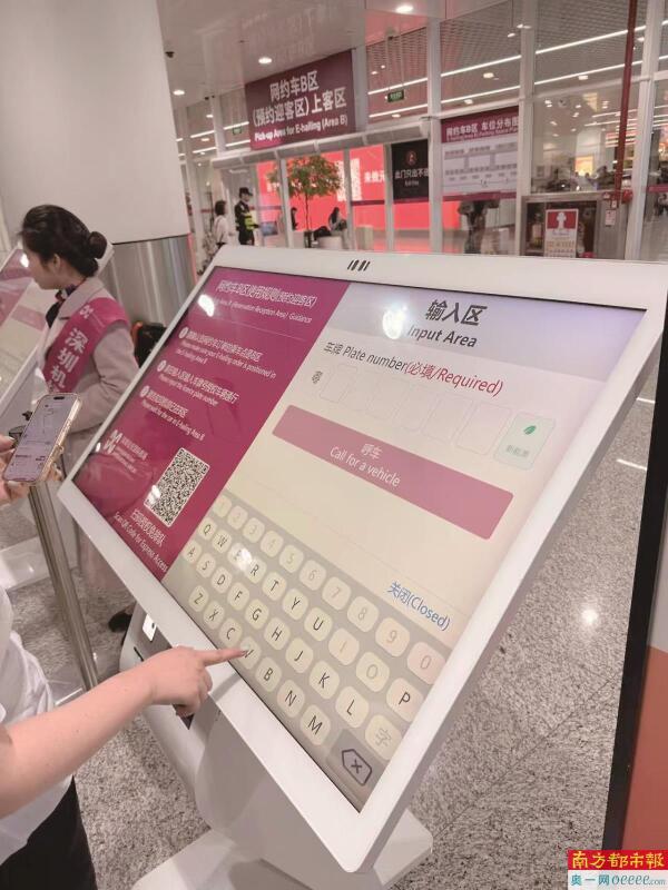 在网约车B区(预约迎客区)上客区,乘客操作电子屏。