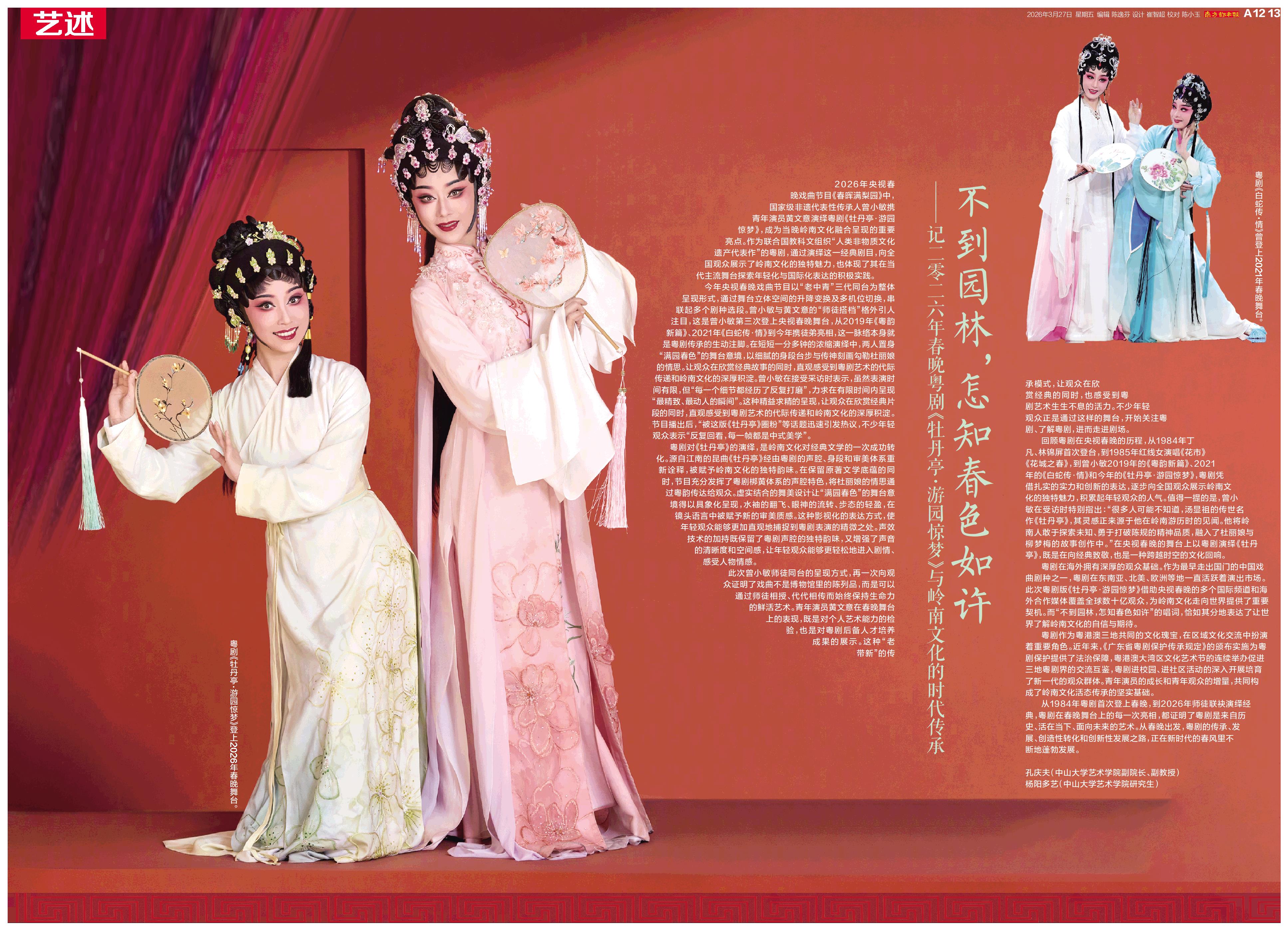 2026年央视春晚戏曲节目《春晖满梨园》中,国家级非遗代表性传承人曾小敏携青年演员黄文意演绎粤剧《牡丹亭·游园惊梦》,成为当晚岭南文化融合呈现的重要亮点。