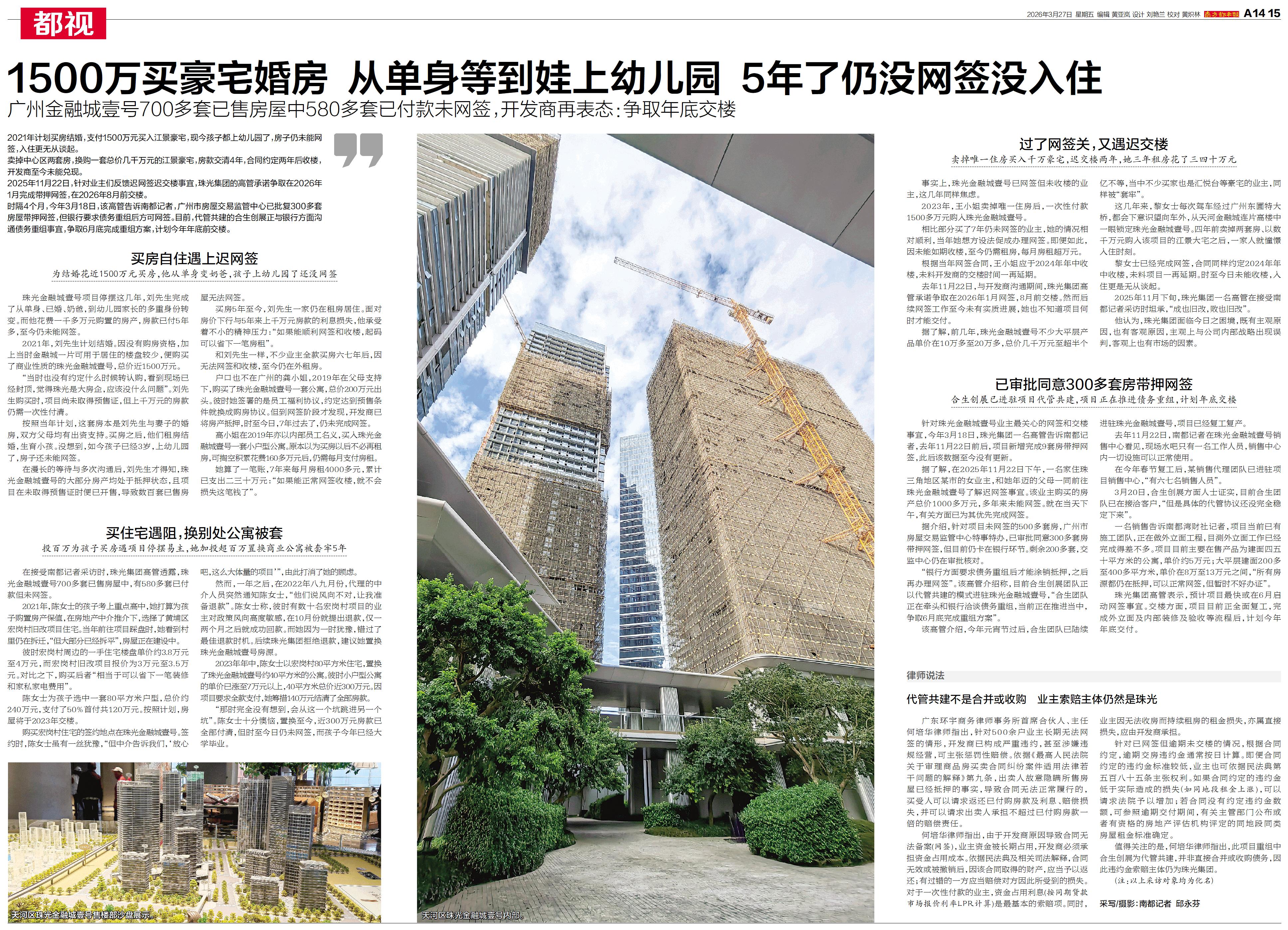 2021年计划买房结婚,支付1500万元买入江景豪宅,现今孩子都上幼儿园了,房子仍未能网签,入住更无从谈起。