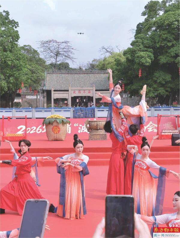 今年广州黄埔“波罗诞”千年庙会于3月27日至31日举办。入夜后步入南海神庙,游客可以和身着唐制服装的NPC游戏、对诗、抽奖,像穿越回古代集市一样。 南都记者 黎湛均 摄