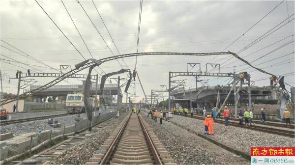 就在前一天下午,大风将铁路沿线一处彩钢瓦棚顶连同30多米长的钢架梁一起吹至高铁接触网,导致南广高铁、贵广高铁广州南至佛山西站间和广湛高铁佛山至荔湾所间接触网挂异物停电,部分列车出现不同程度晚点、停运。