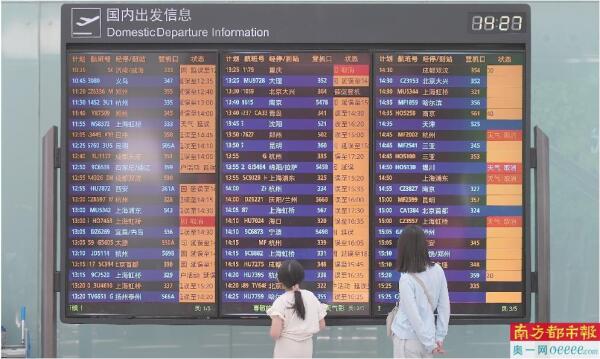 深圳机场T3出发大厅现场航班信息。 南都记者 赵炎雄 摄