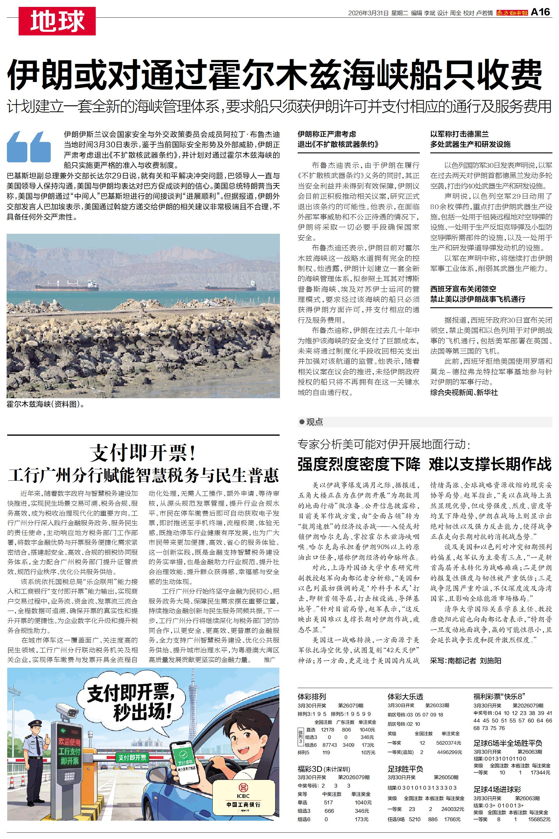 伊朗伊斯兰议会国家安全与外交政策委员会成员阿拉丁·布鲁杰迪当地时间3月30日表示,伊朗正严肃考虑退出《不扩散核武器条约》,并计划对通过霍尔木兹海峡的船只实施更严格的准入与收费制度。