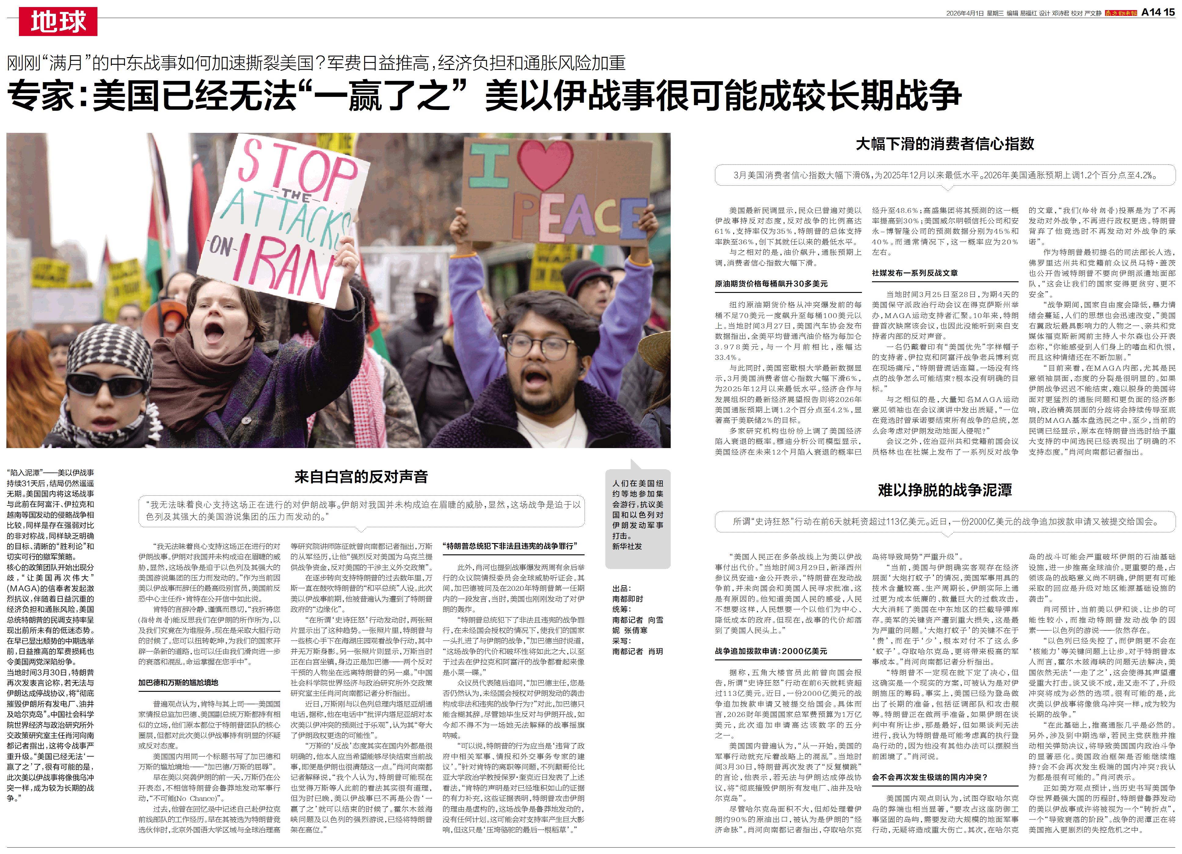 正如美方观点预计,当历史书写美国争夺世界最强大国的历程时,特朗普鲁莽发动的美以伊战事或许将被视为一个“转折点”,一个“导致衰落的阶段”。战争的泥潭正在将美国拖入更剧烈的失控危机之中。