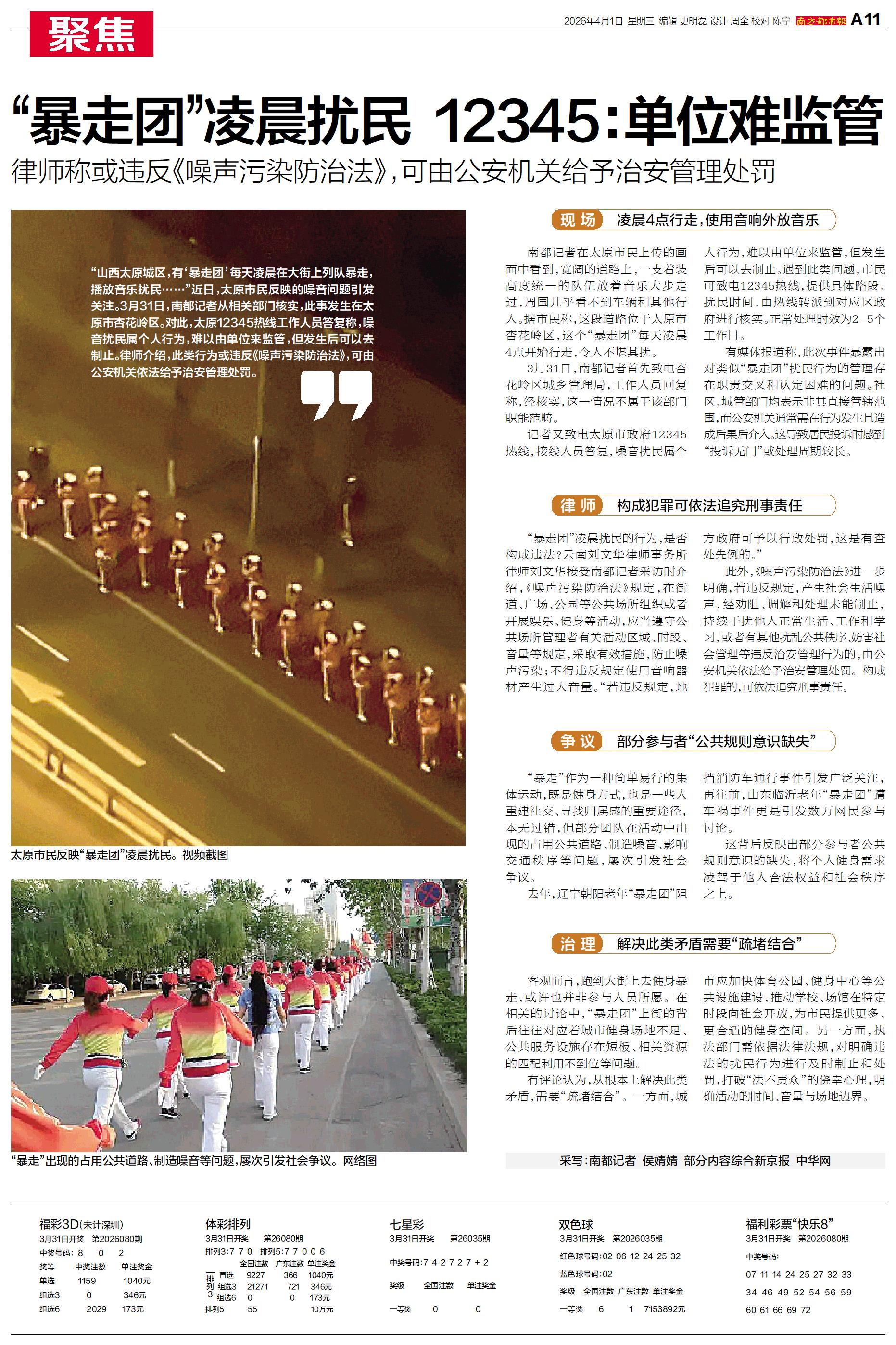 “山西太原城区,有‘暴走团’每天凌晨在大街上列队暴走,播放音乐扰民……”近日,太原市民反映的噪音问题引发关注。