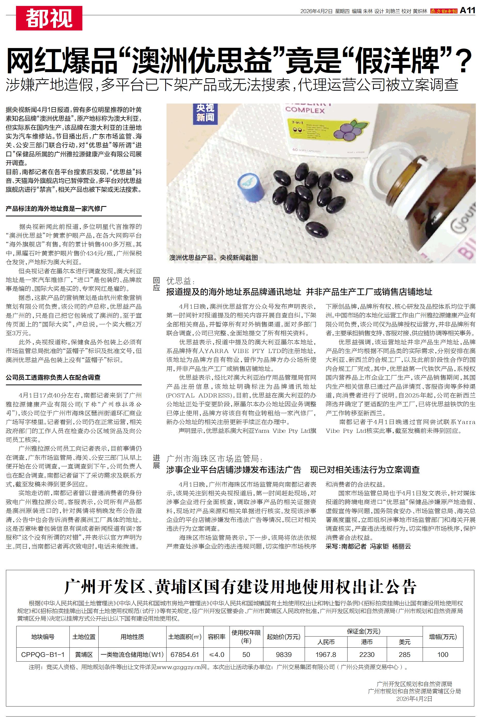 据央视新闻4月1日报道,曾有多位明星推荐的叶黄素知名品牌“澳洲优思益”,原产地标称为澳大利亚,但实际系在国内生产,该品牌在澳大利亚的注册地实为汽车维修站。