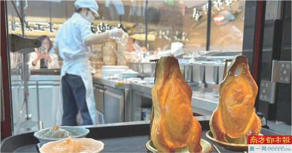 越来越多的早茶门店推出创新点心。图右的点心为烧鹅形状的叉烧酥。